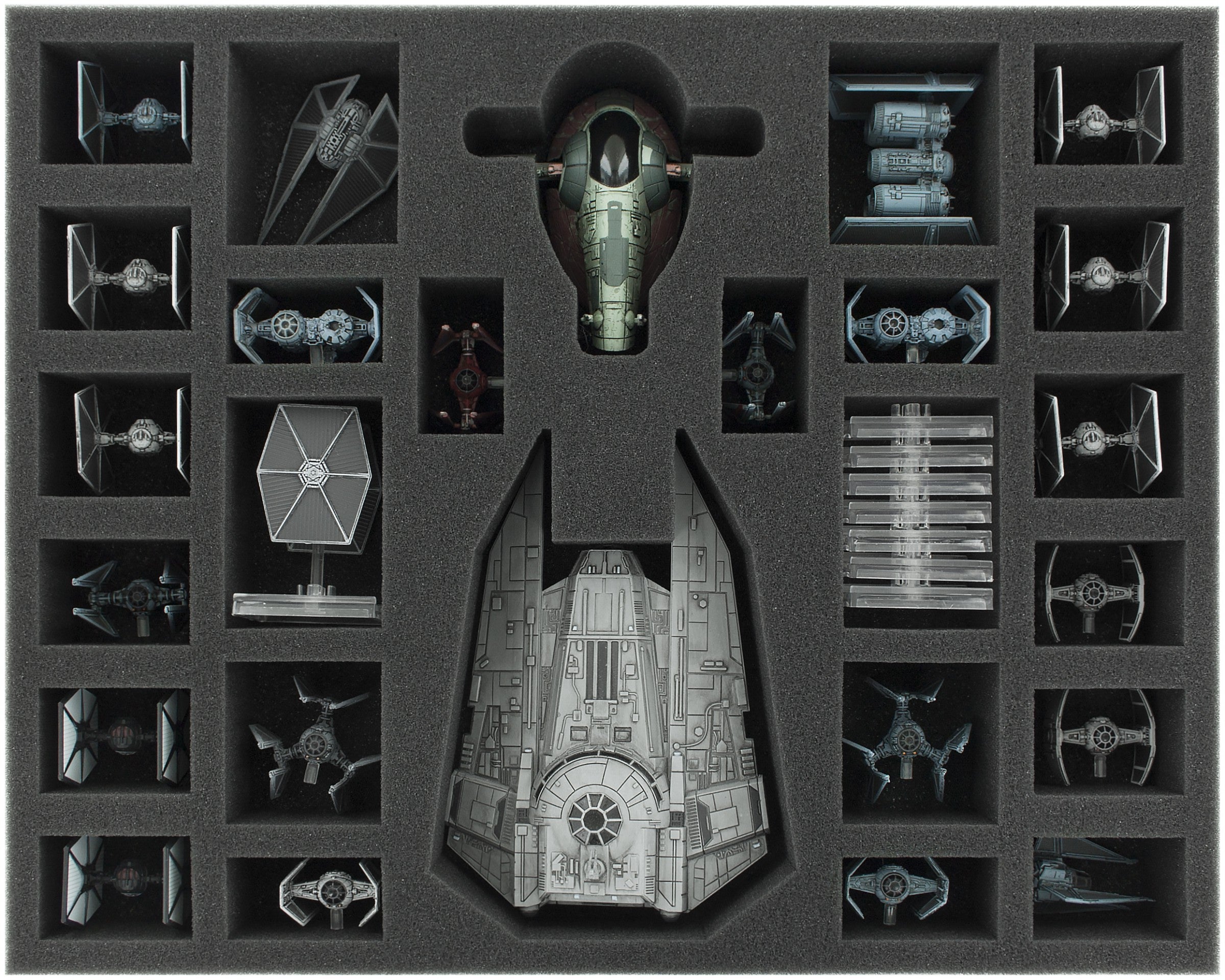 • 1 x 50 mm (1.96 inches) full-size foam tray for Star Wars X-WING: Decimator, Slave 1 and Tie's (Item No.:[FSJU050BO])