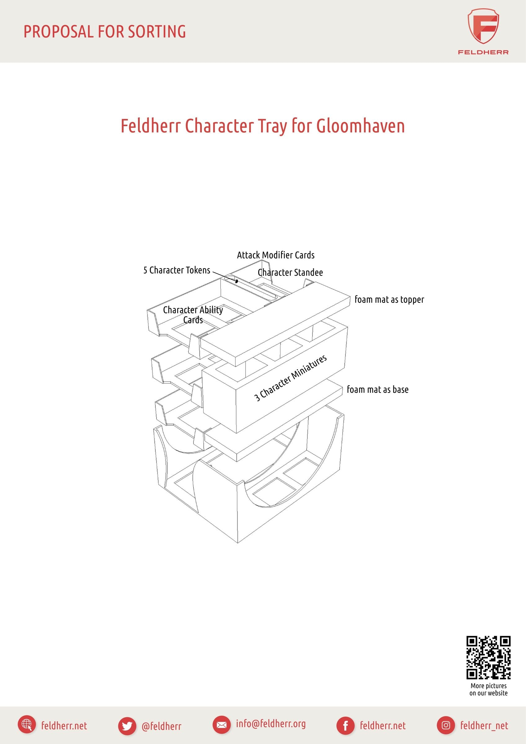 Gloomhaven and Frosthaven thrill with high detailed miniatures. In addition to the starting classes, you have many more to unlock. So that your unlocked miniatures have a safe spot and don’t have to be stored without proper protection in your board game box, the character tray set contains a small Feldherr foam tray with three matching compartment.