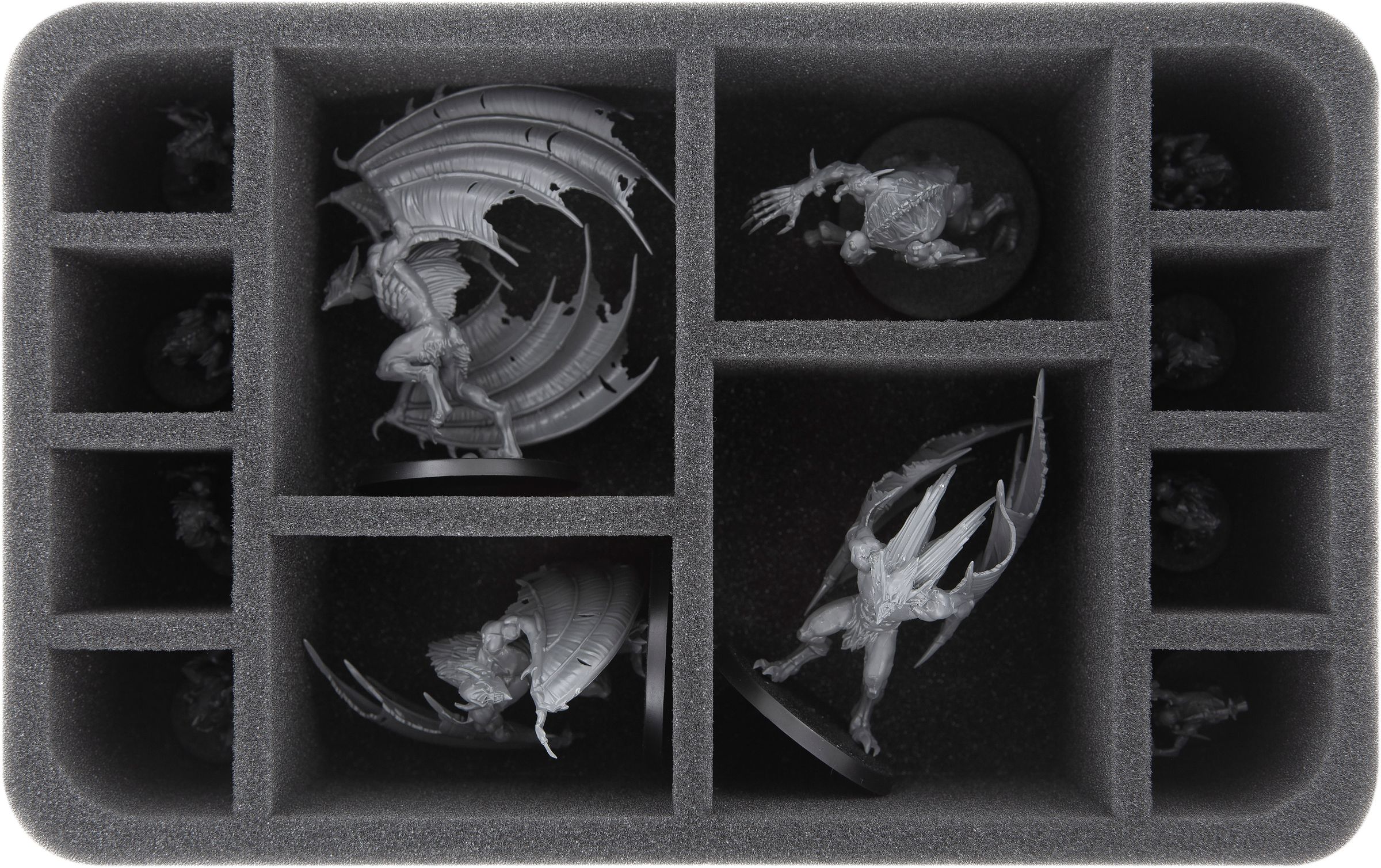 Two Half-Size inserts offer a safe place for all Ghoul miniatures from the GW core box. Precisely fitting compartments for each individual model ensure that the figures do not slide around or collide with each other during transport. This also ensures that the colors of the painted Flesh-eater Courts are completely safe from abrasion and scratches.