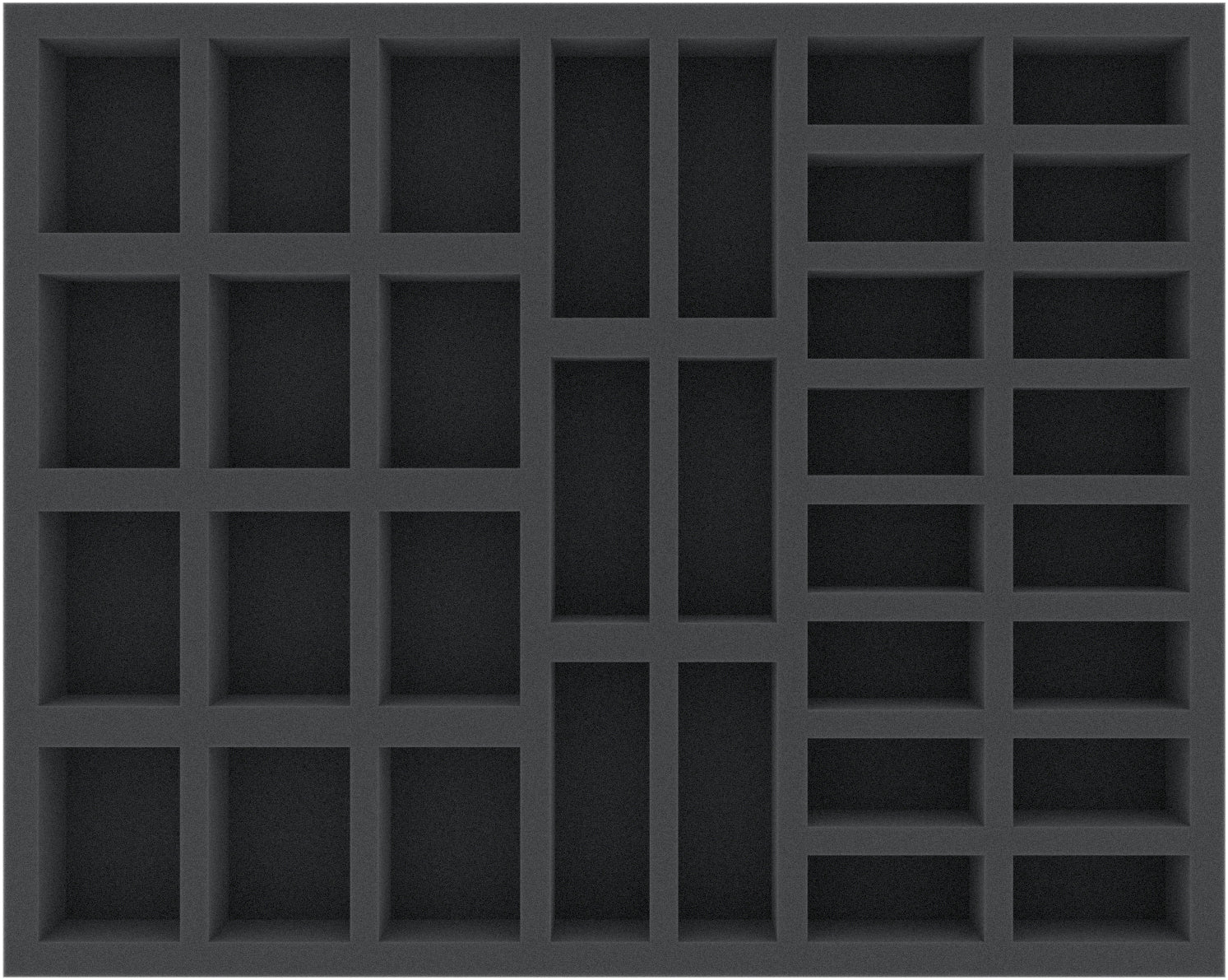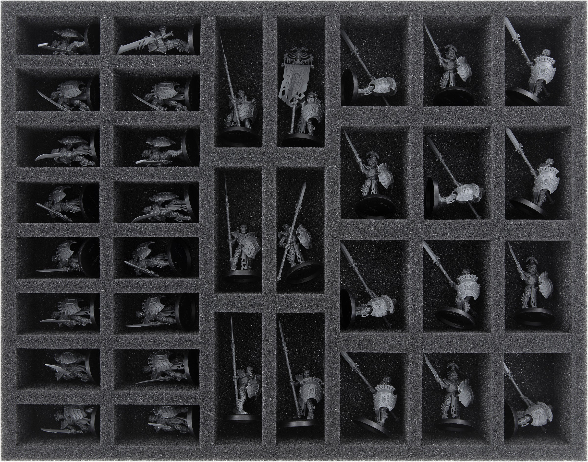 On this Full-Size foam tray you have space for up to 34 miniatures of your army. The insert is especially suitable for storing the Mortek Guard, armed with spears and swords.