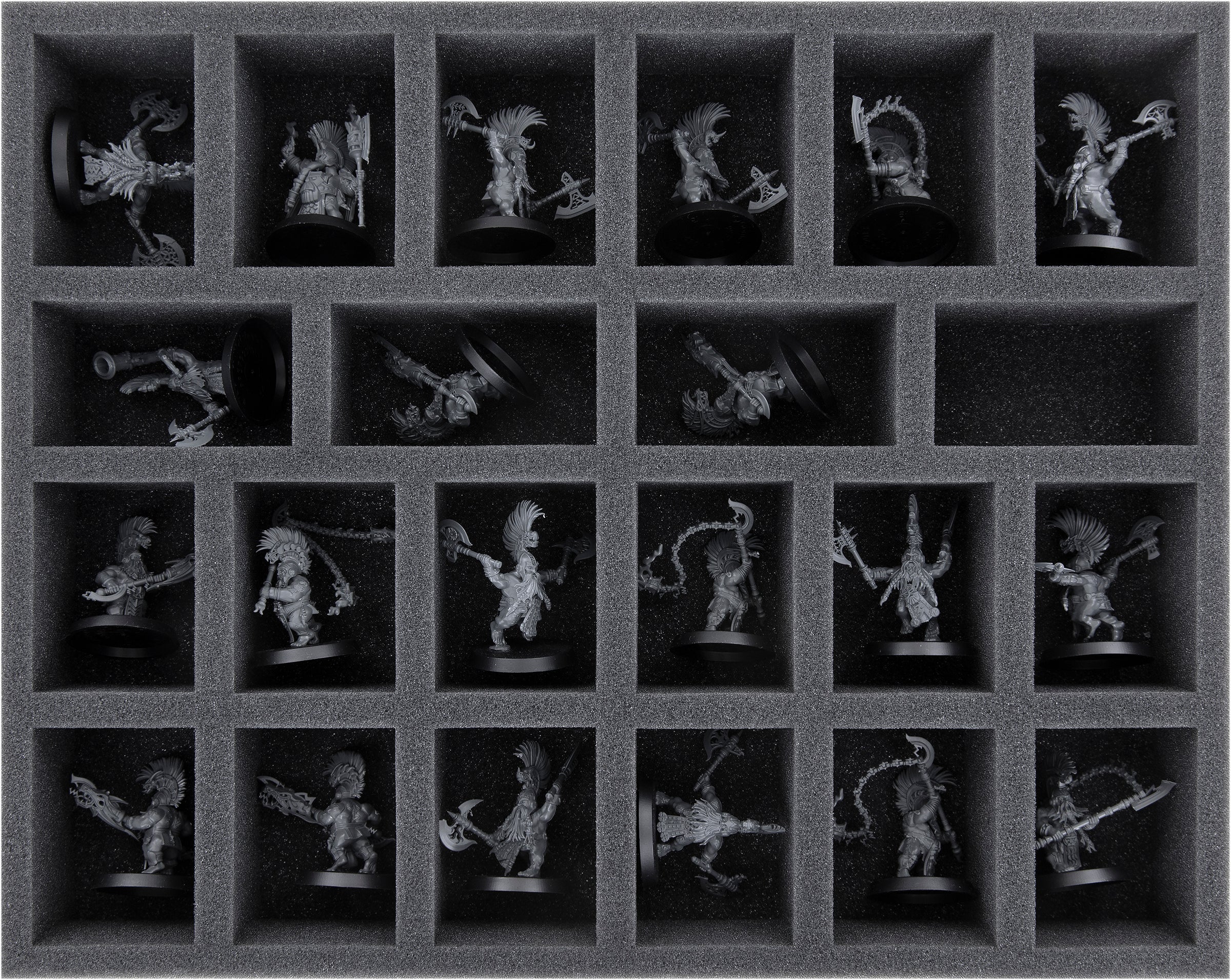 Each miniature in your collection gets its own custom-fit compartment here. This ensures that your models remain safely in place during transport. The soft foam protects the sensitive parts of your figures and the colors of painted miniatures are just as safe from abrasion and scratches.