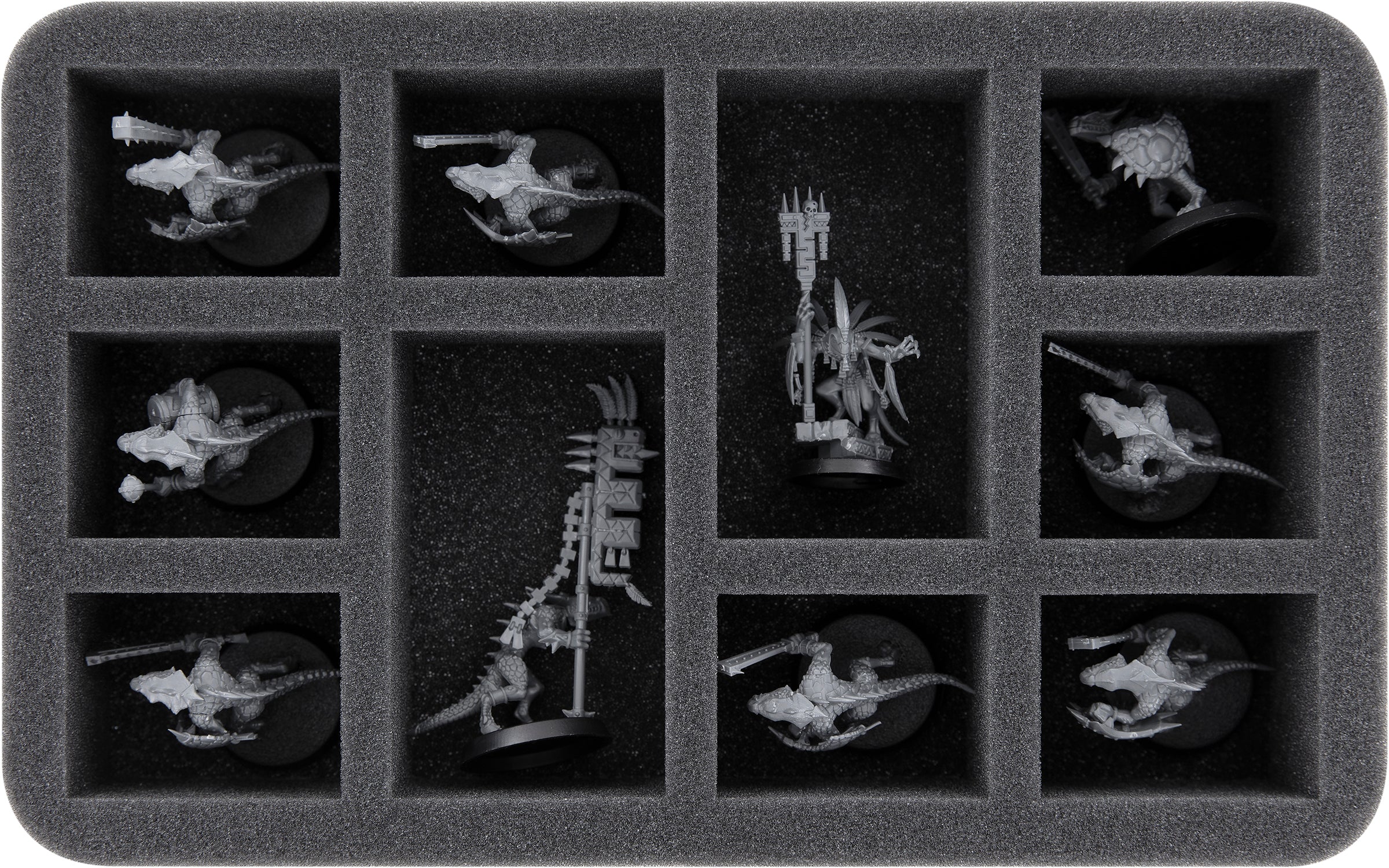 • 1 Full-Size foam tray with 12 compartments for e.g. Saurus Oldblood on Carnosaur, Saurus Knights, Saurus Warriors (FSMFCA105BO)