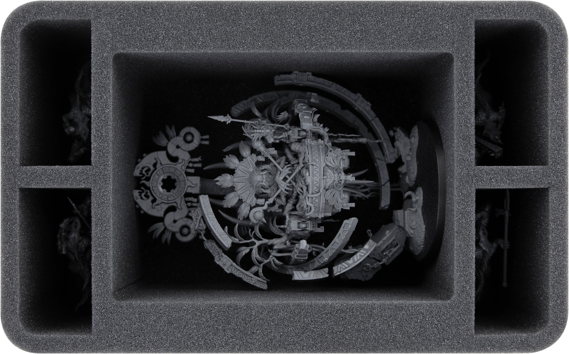 Each miniature in your collection gets its own custom-fit compartment here. This ensures that your models remain safely in place during transport. The soft foam protects the sensitive parts of your figures, and the colors of painted miniatures are just as safe from abrasion and scratches.