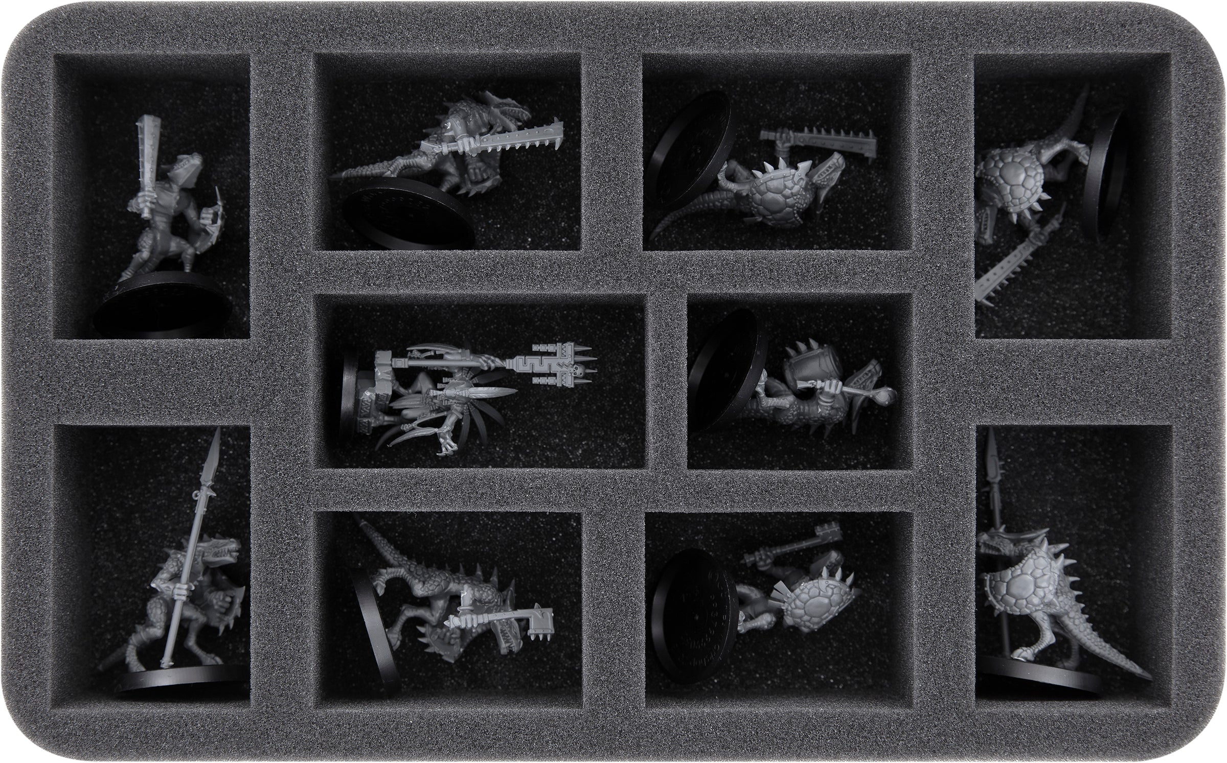 On this Feldherr foam tray you have space for up to 10 miniatures of your army. The insert is especially suitable for storing the Scinari Loreseeker, Scinari Calligrave, Scinari Cathallar and similar sized models.