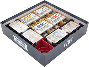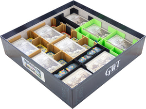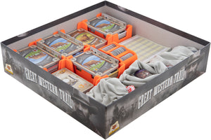 With well thought-out sorting and precisely fitting compartments, Great Western Trail remains well protected, clearly organized and ready to play faster - at home or on the go for game night.