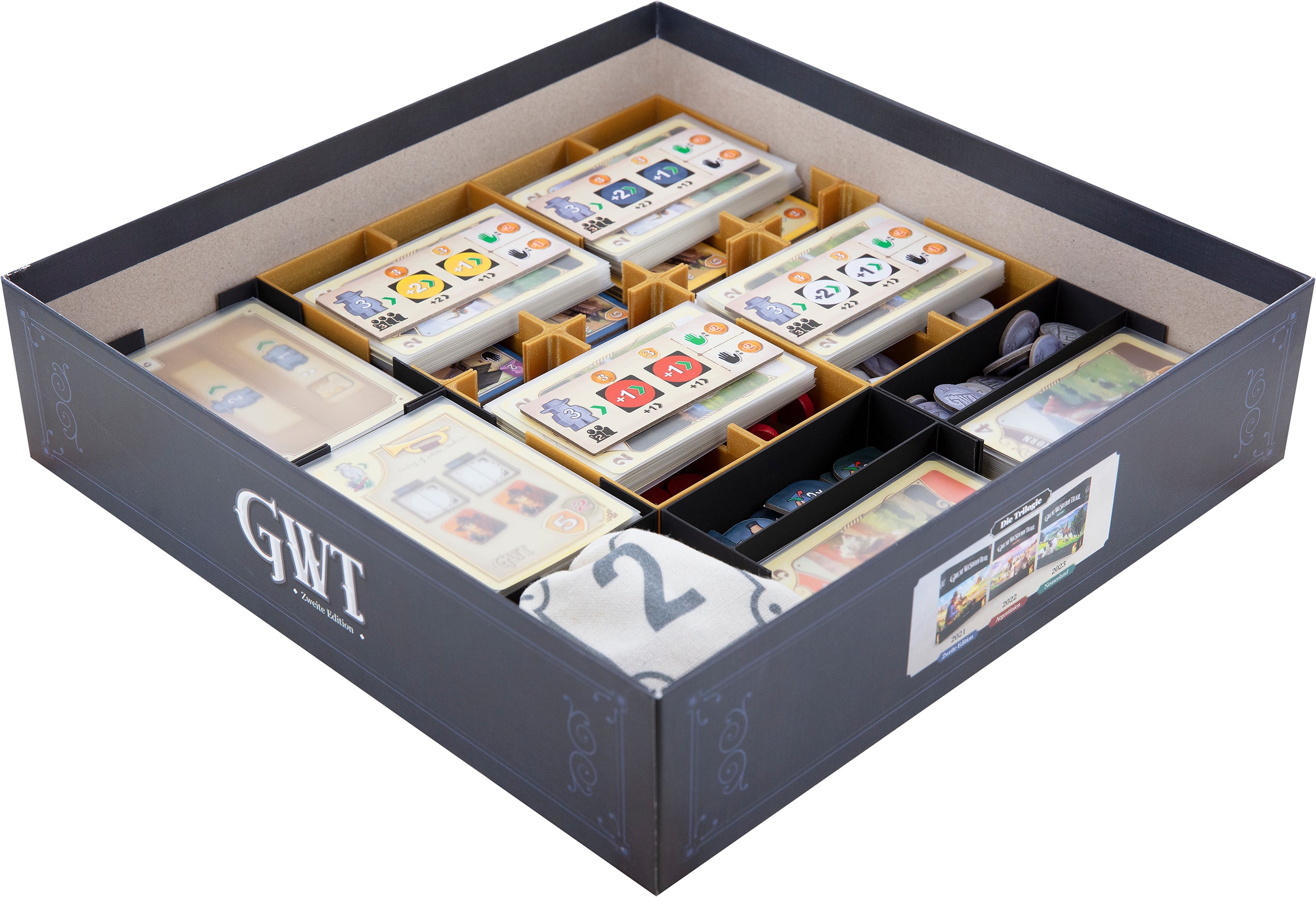 • The Organizer provides space for all game materials from the “Great Western Trail (Second Edition)” core game by eggertspiele.