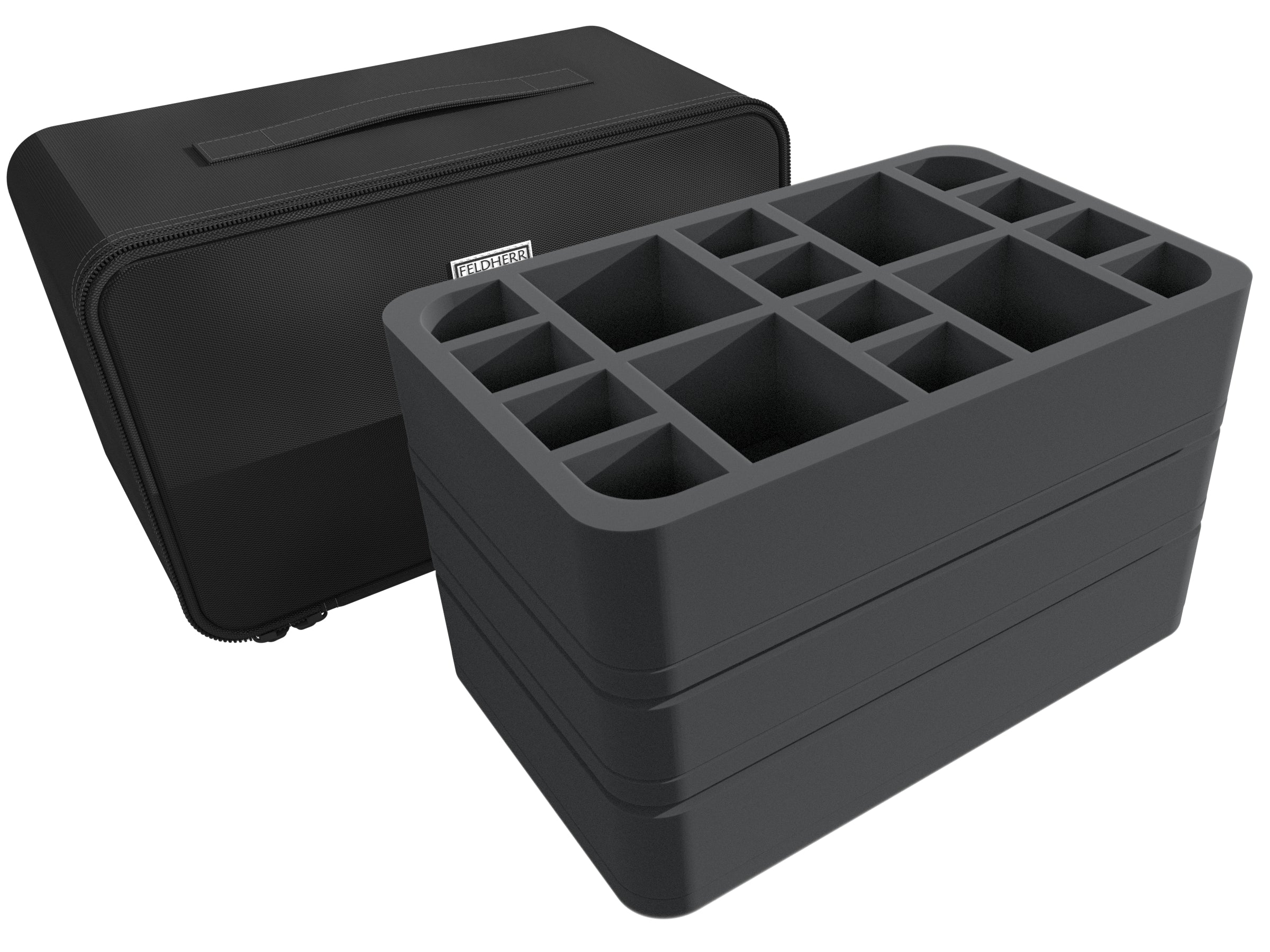 The large and small figures of your guild are best stored in the foam tray with 16 compartments. The tray features 4 large and 12 small compartments. The fine-pored foam provides the best possible protection for your athletes – delicate, protruding parts like axes and whips won’t break, the paint of colored models won’t get scratched.