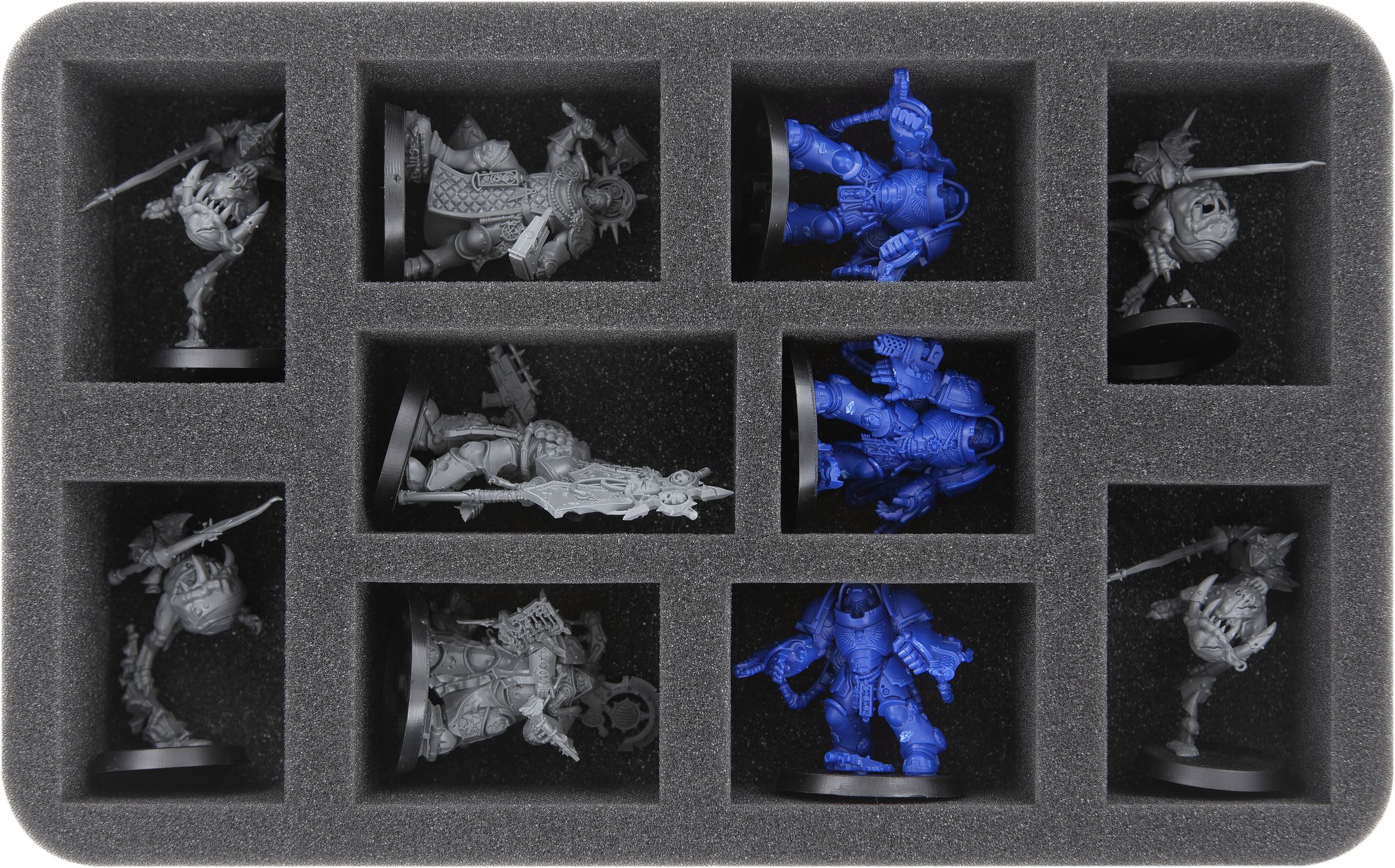 Up to 10 models are safely stored in this foam tray. The compartments of different sizes are ideal for a clear and protected storage of miniatures with protruding details.