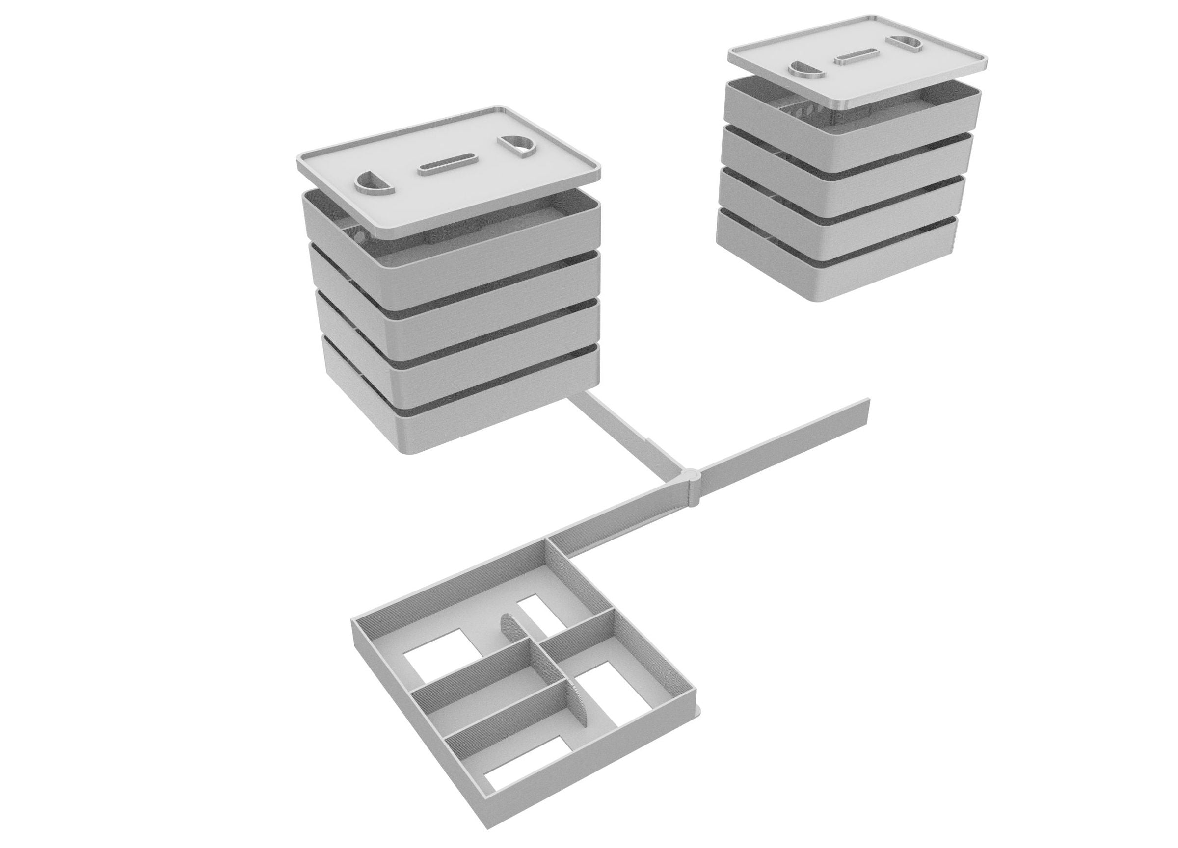 The token holders are stackable and there are 2 lids included.The token holders give you room for: