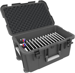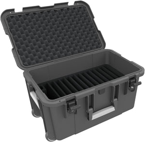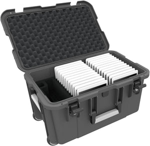Case / Trolley for 20 tablets in thick sleeves - compartments 22 mm wide - compatible with Apple iPad, Samsung Galaxy Tab A or Microsoft Surface Go