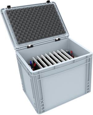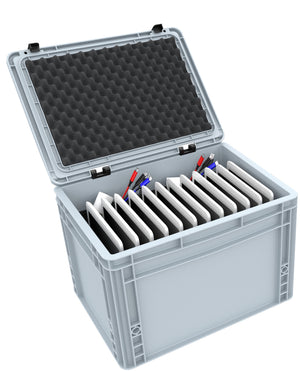 • Loading image: Transport Case / Trolley for 12 tablets in XL sleeves - compartments 26 mm wide - compatible with Apple iPad, Samsung Galaxy Tab A or Microsoft Surface Go Transport Case / Trolley for 12 tablets in XL sleeves - compartments 26 mm wide - compatible with Apple iPad, Samsung Galaxy Tab A or Microsoft Surface Go