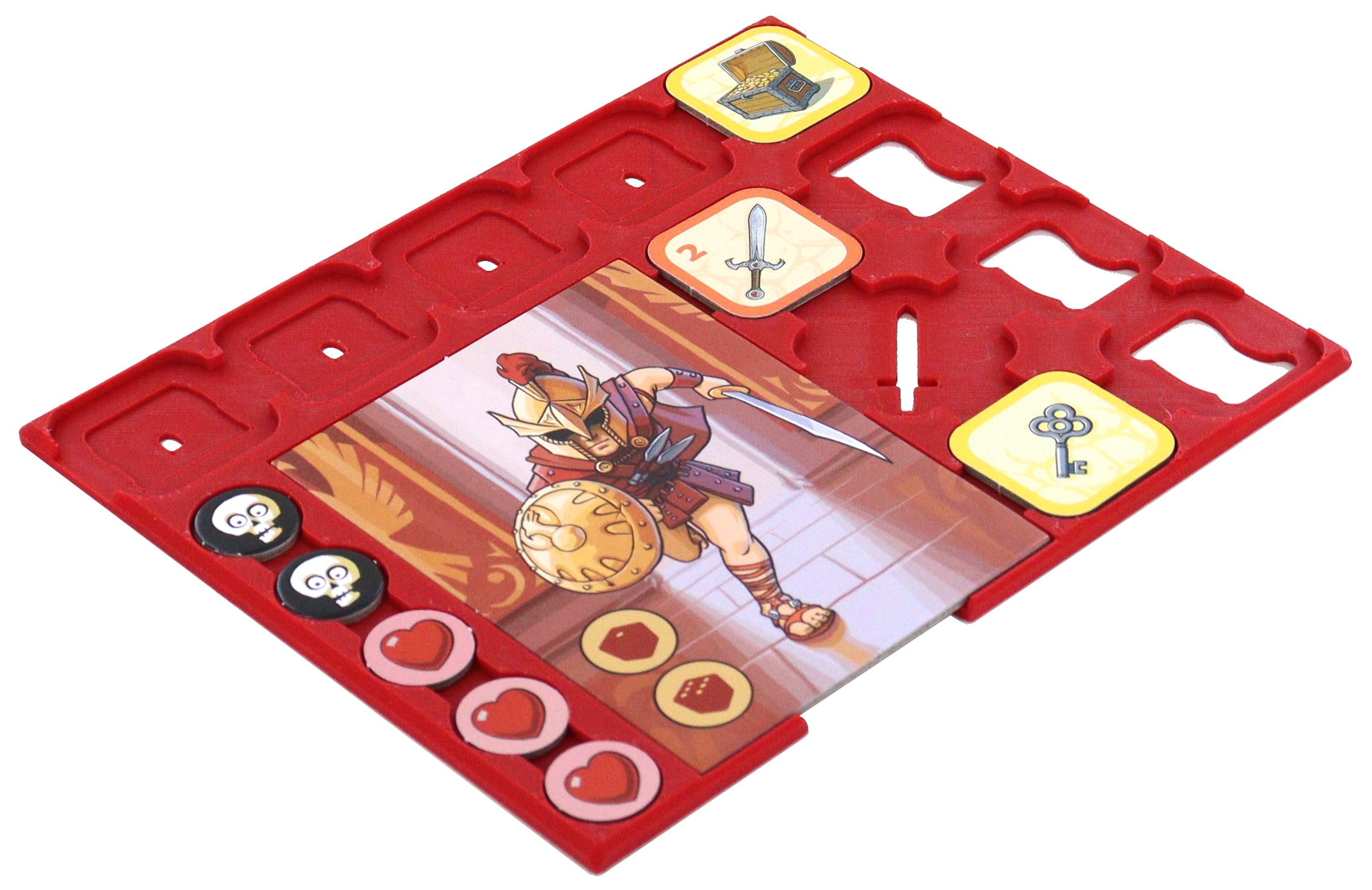 With this Full Player Set, each player receives their own Hero Dashboard for Karak. So you can always keep track of your characters, and nobody is confused by the flood of tokens. Made of durable plastic, they replace the included cardboard Dashboards and help you master your avatar and concentrate on what's important: the fight for the valuable treasures.