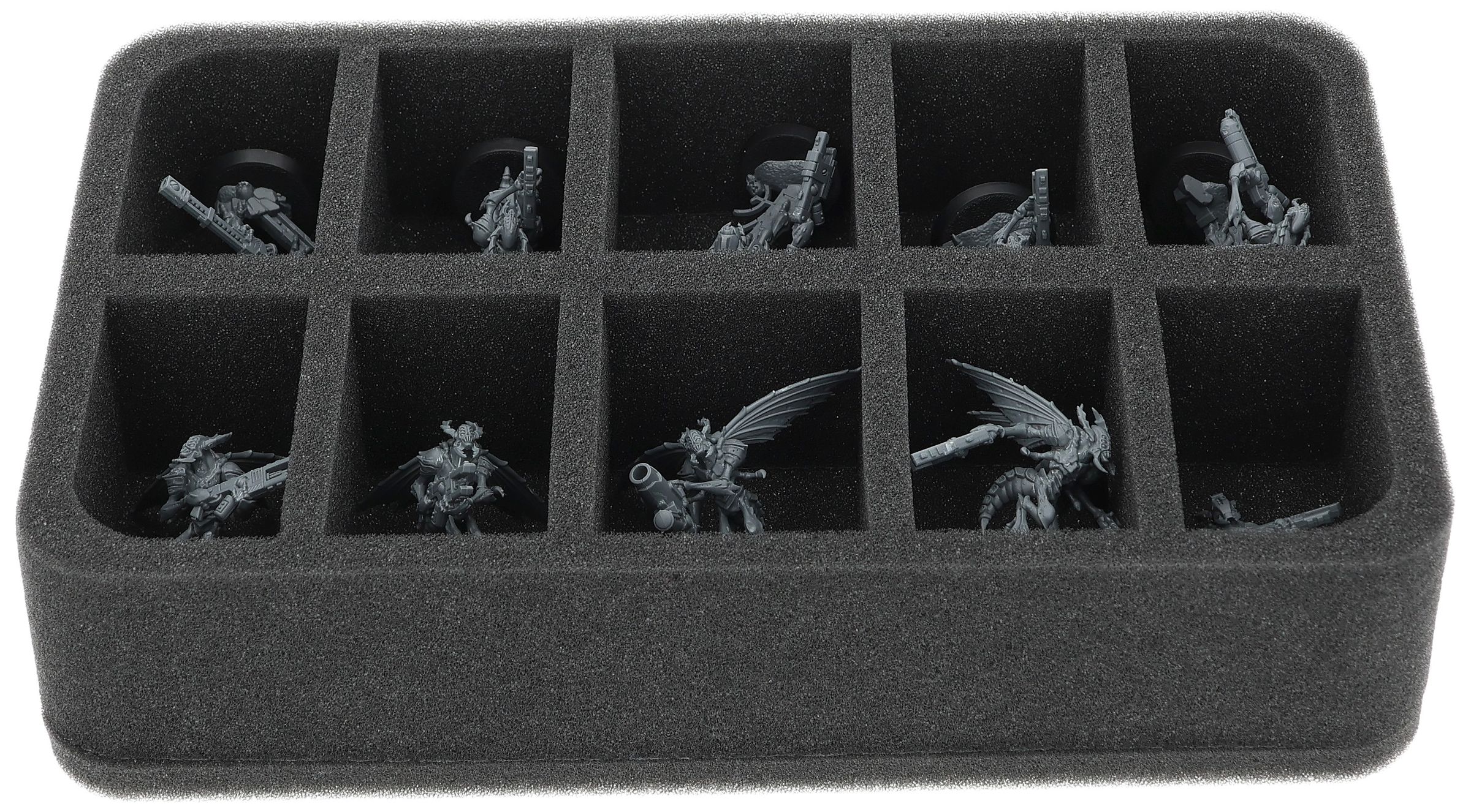 On this Feldherr foam tray you have space for up to 10 miniatures of your collection. The insert is especially suitable for storing the Vespid Stingwings and similar sized models.