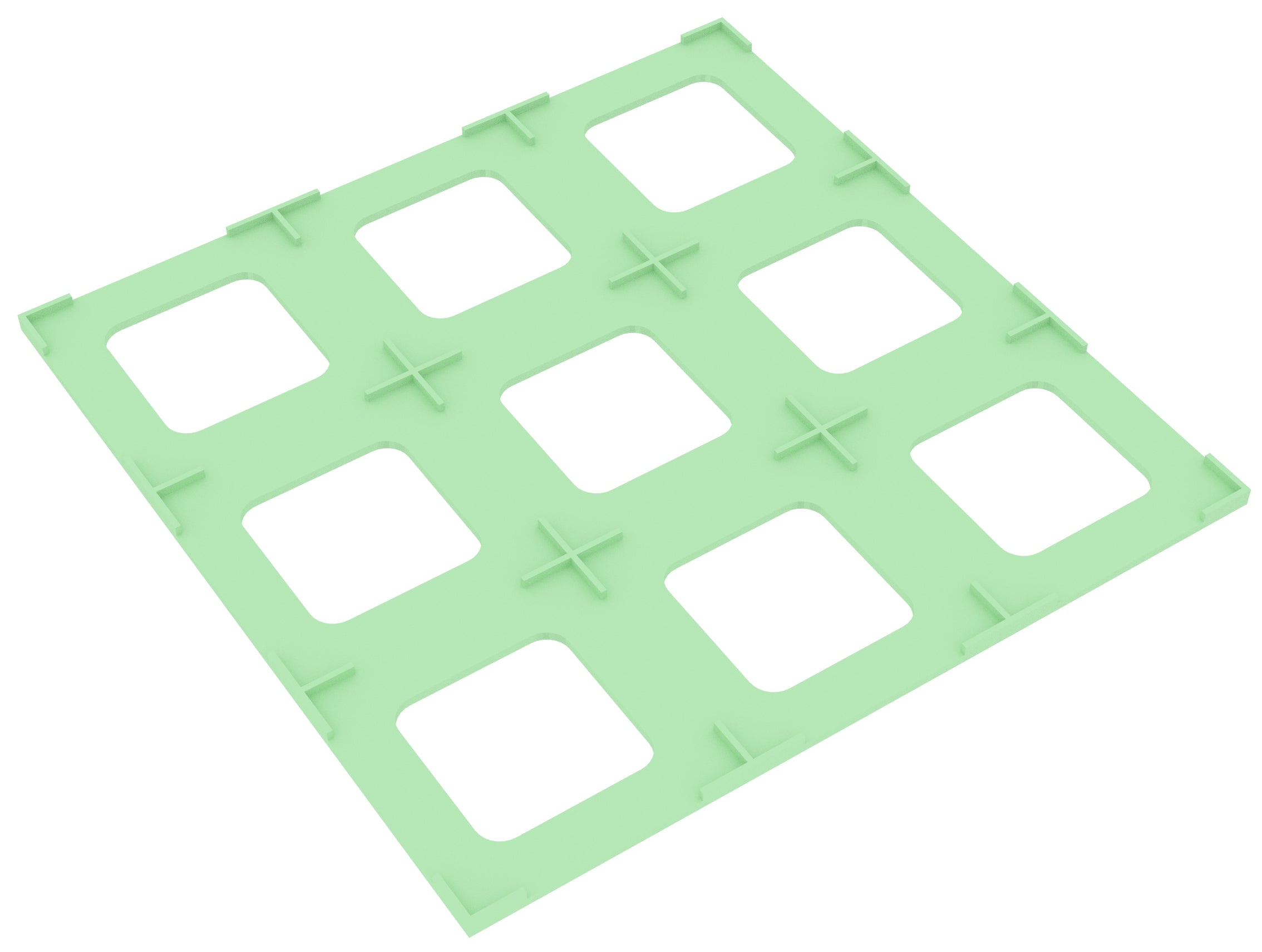 Internal dimensions per compartment: 55 mm long x 55 mm wide x 2 mm deep