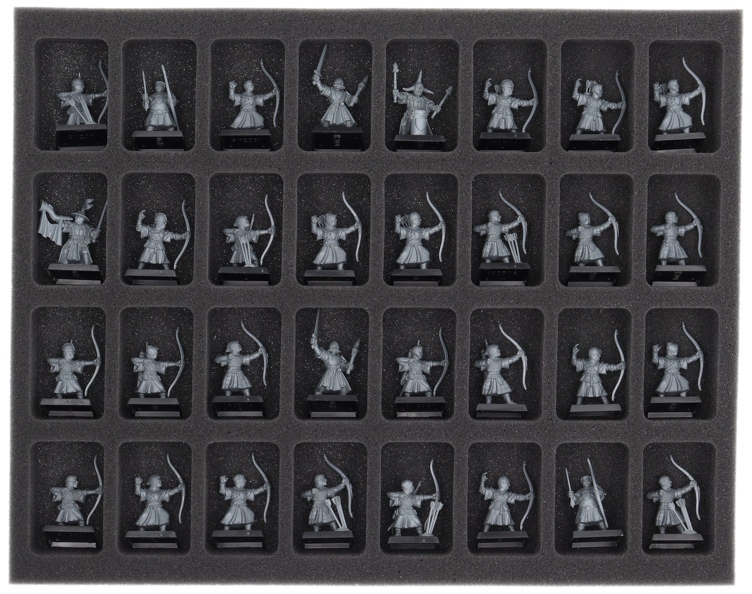On this Feldherr foam tray you have space for up to 32 miniatures of your army. The insert is especially suitable for storing the Peasant Bowmen and similar sized models.
