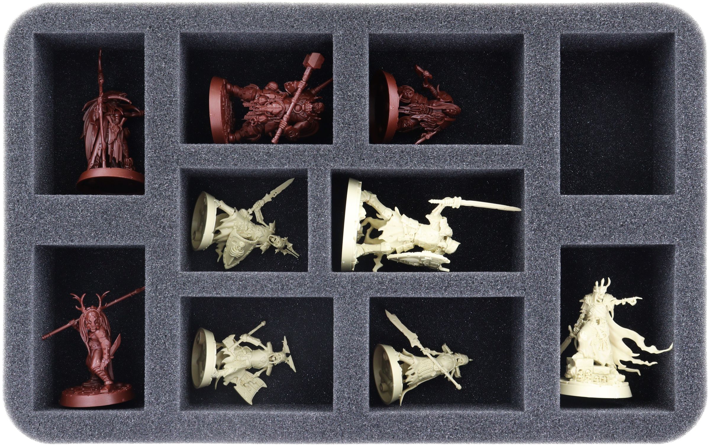 The foam tray has 10 compartments. Here gets each of your Einhyr-Champion, Einhyr Hearthguard and Kâhl its own compartment. Ideal for a small boarding patrol or kill team.