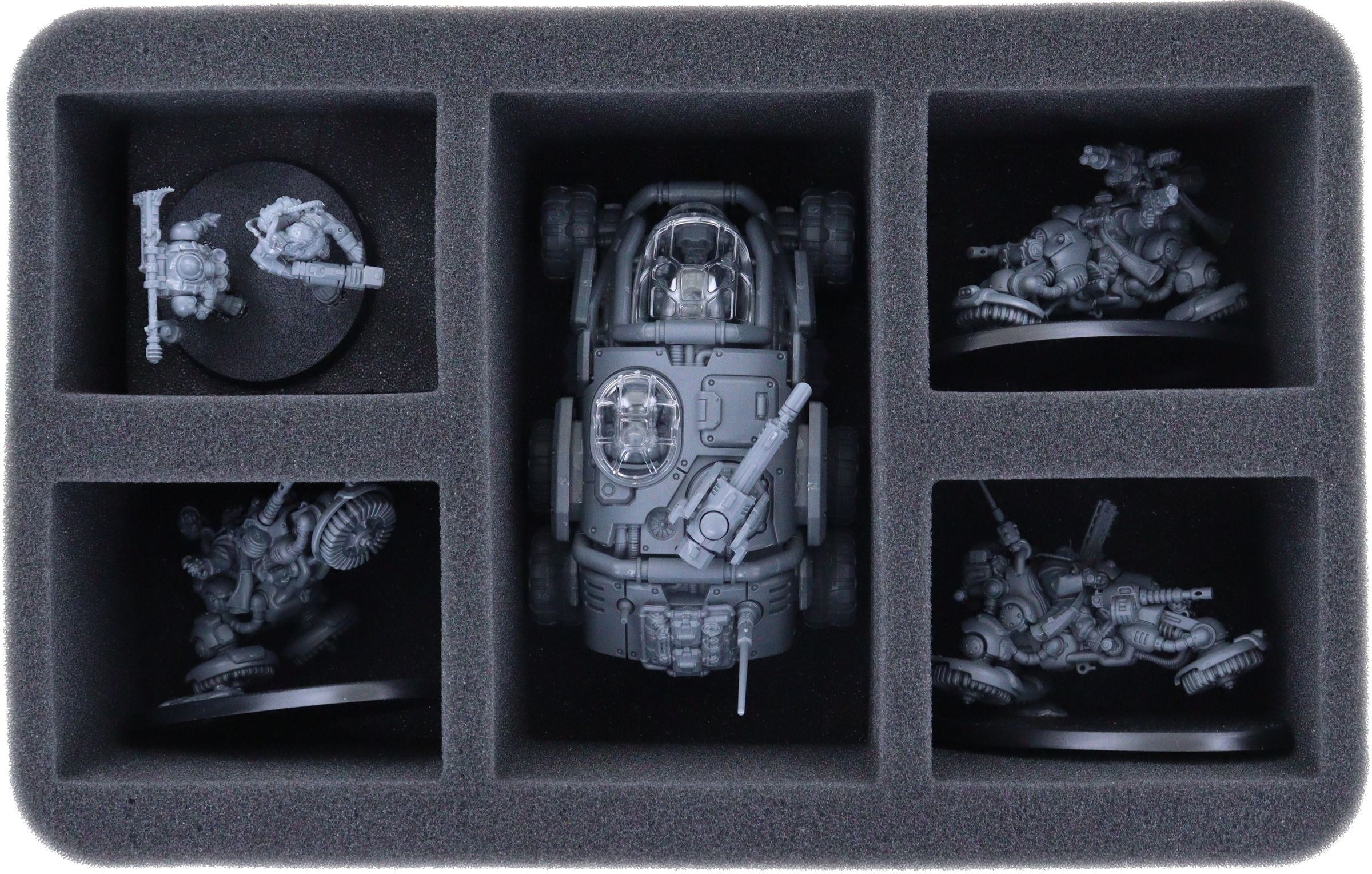 • 1 Half-Size foam tray with 5 compartments for e.g. 1 Sagitaur + Hernkyn Pioneers (HS090A010)