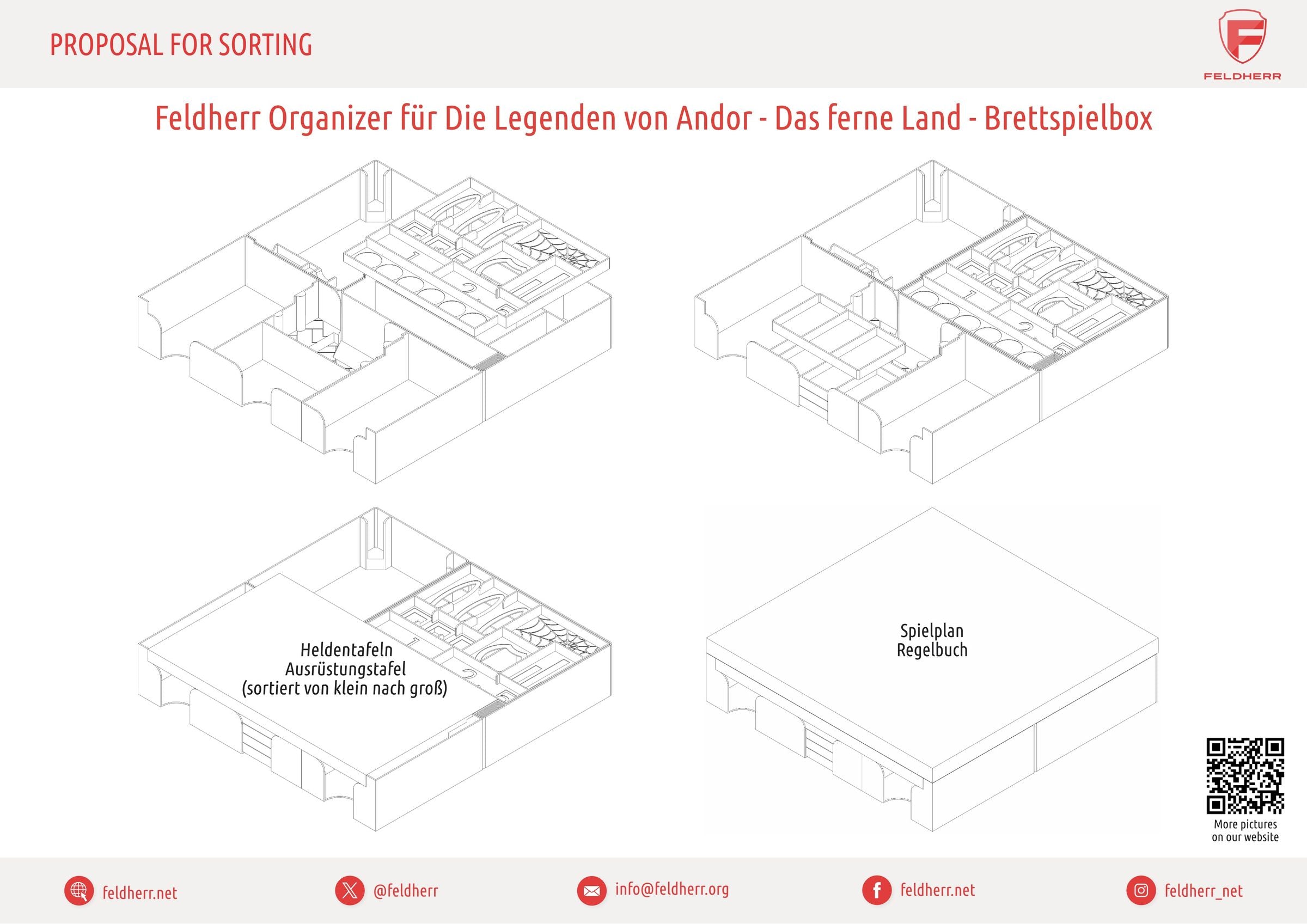 The Distant Land marks the beginning of a new chapter in the Andor universe. New heroes, unknown dangers, and a remote land await you. To ensure that you don't get lost in the game components during your adventure, our Feldherr Organizer insert brings structure to the board game box and ensures a clear overview, faster setup, and smoother gameplay.