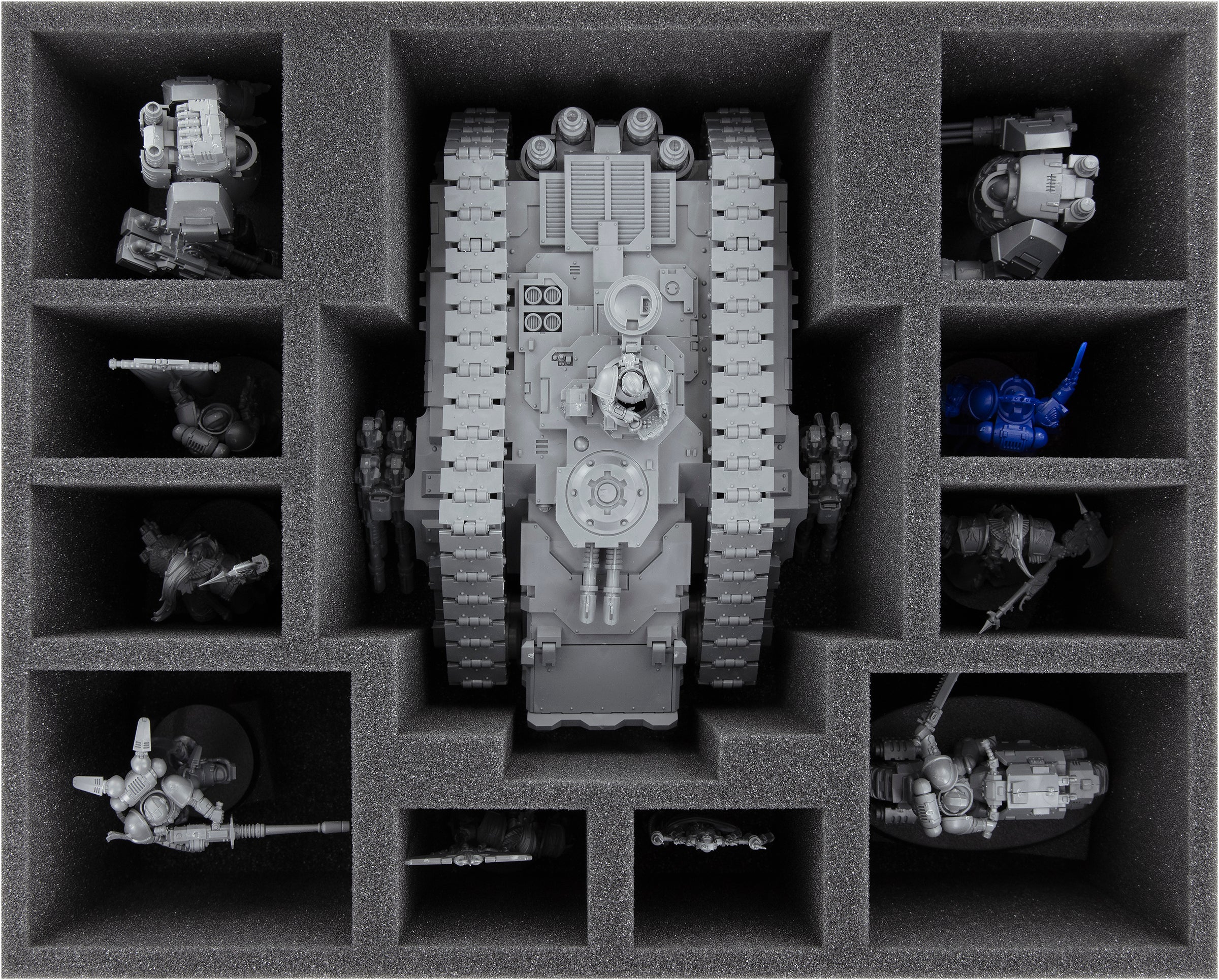 - 1 Full-Size foam tray with 11 compartments for Spartan Assault Tank, Contemptor Dreadnought, Praetors (FSMFIE110BO)