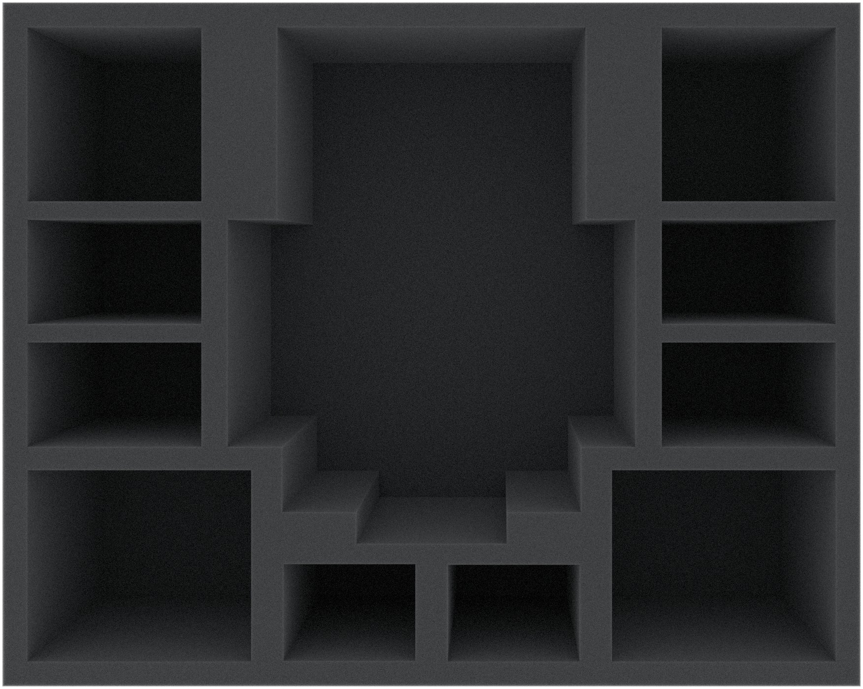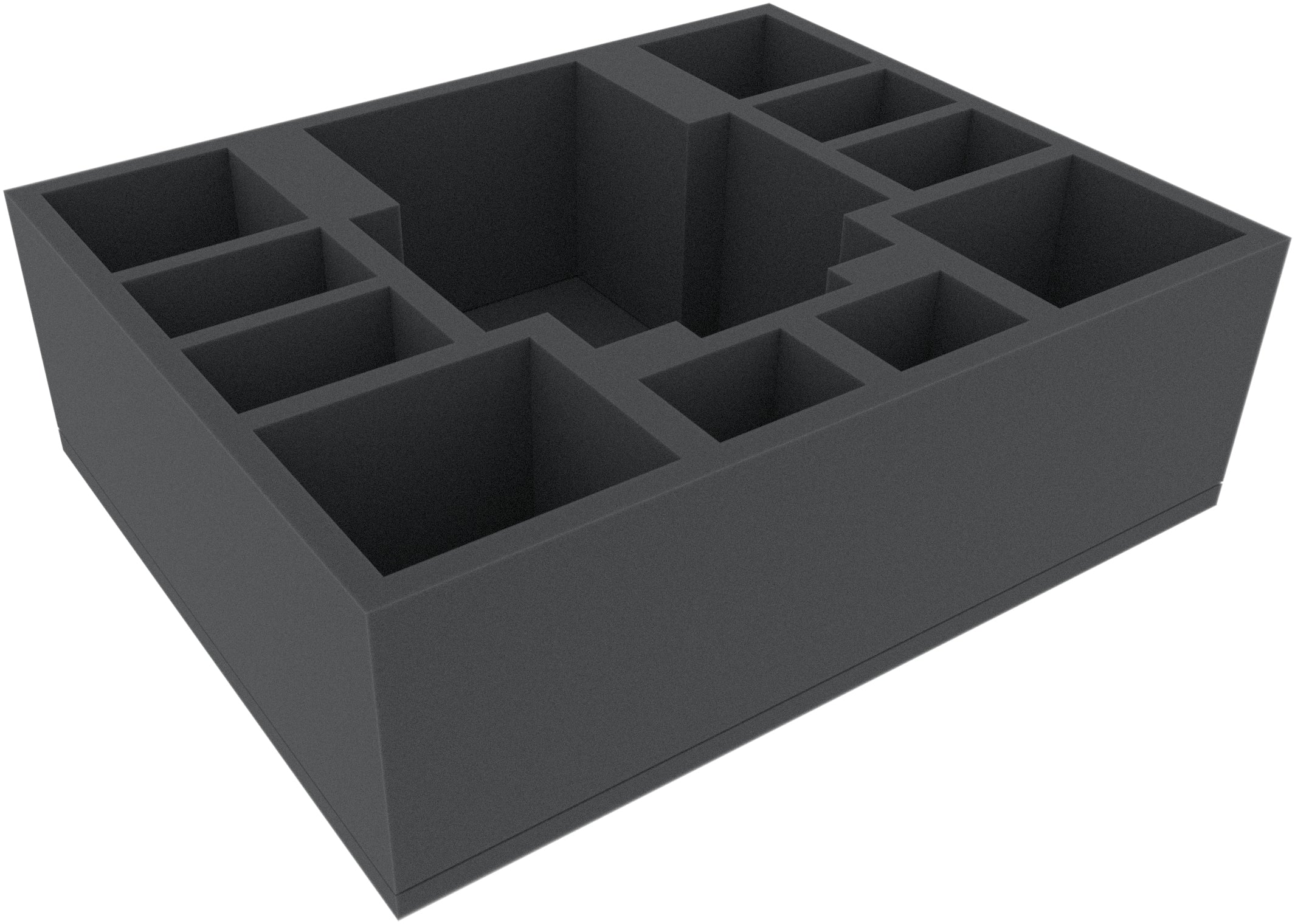 The Full-Size foam tray has the dimensions: 345 mm x 275 mm x 110 mm total height (100 mm usable height + 10 mm foam base).