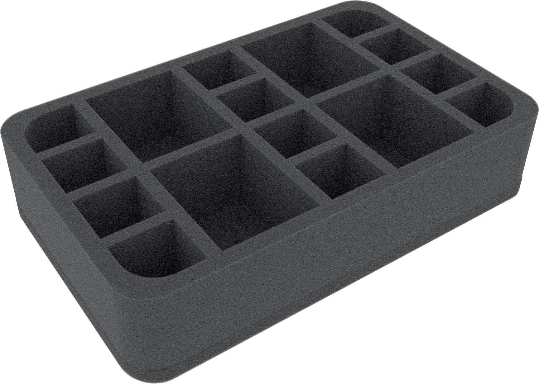 Perfect for 12 Characters on Tags and 4 big miniatures. This foam tray has 16 compartments - each is 50 mm deep.