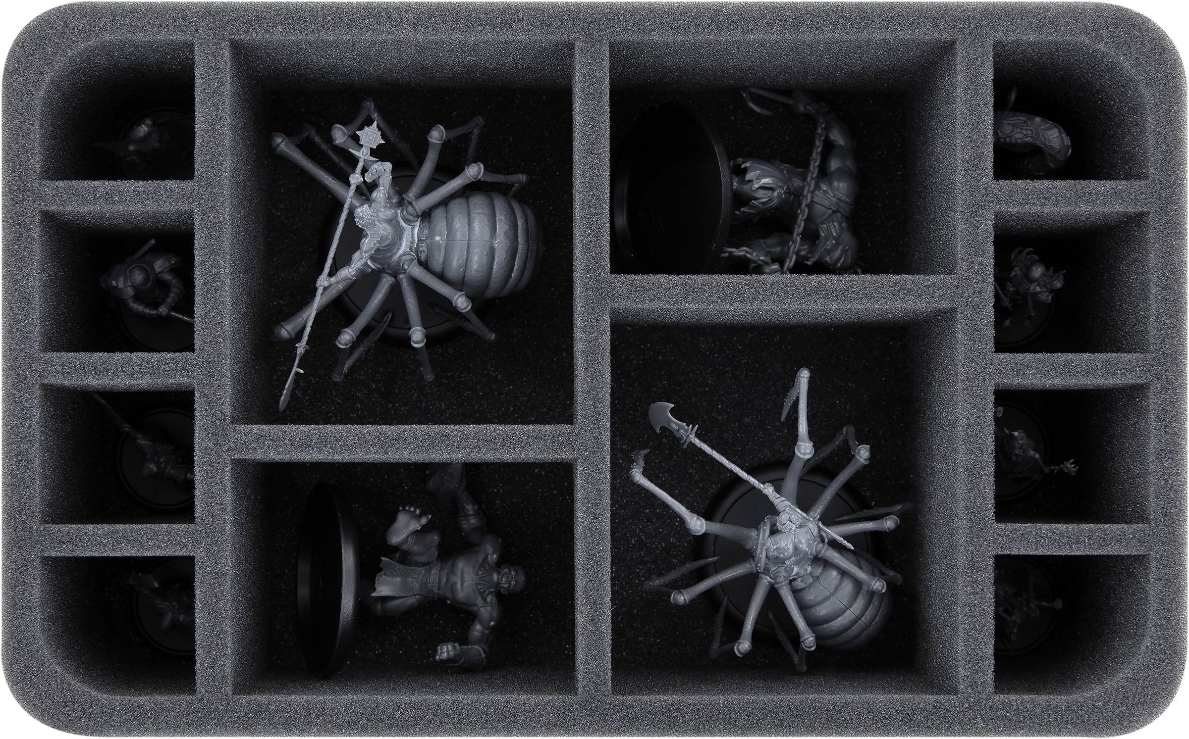- 2 Half-Size foam tray with 14 compartments for bulky miniatures like Gigant, Thoon and Dead Rider (HS065A012)