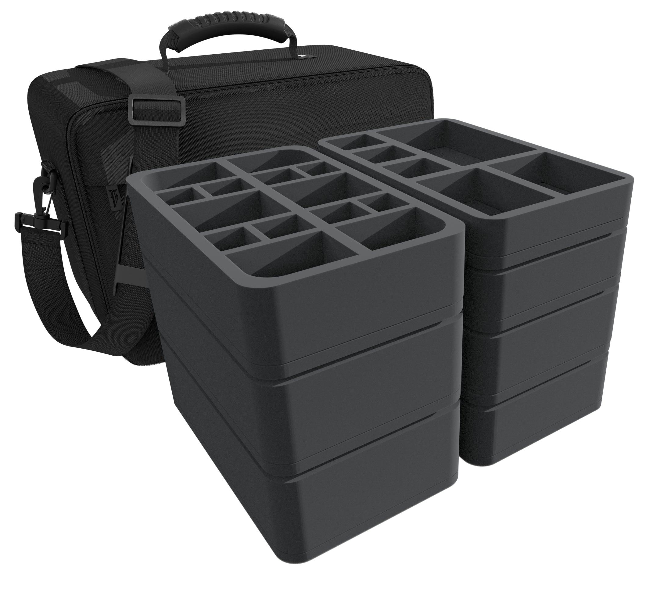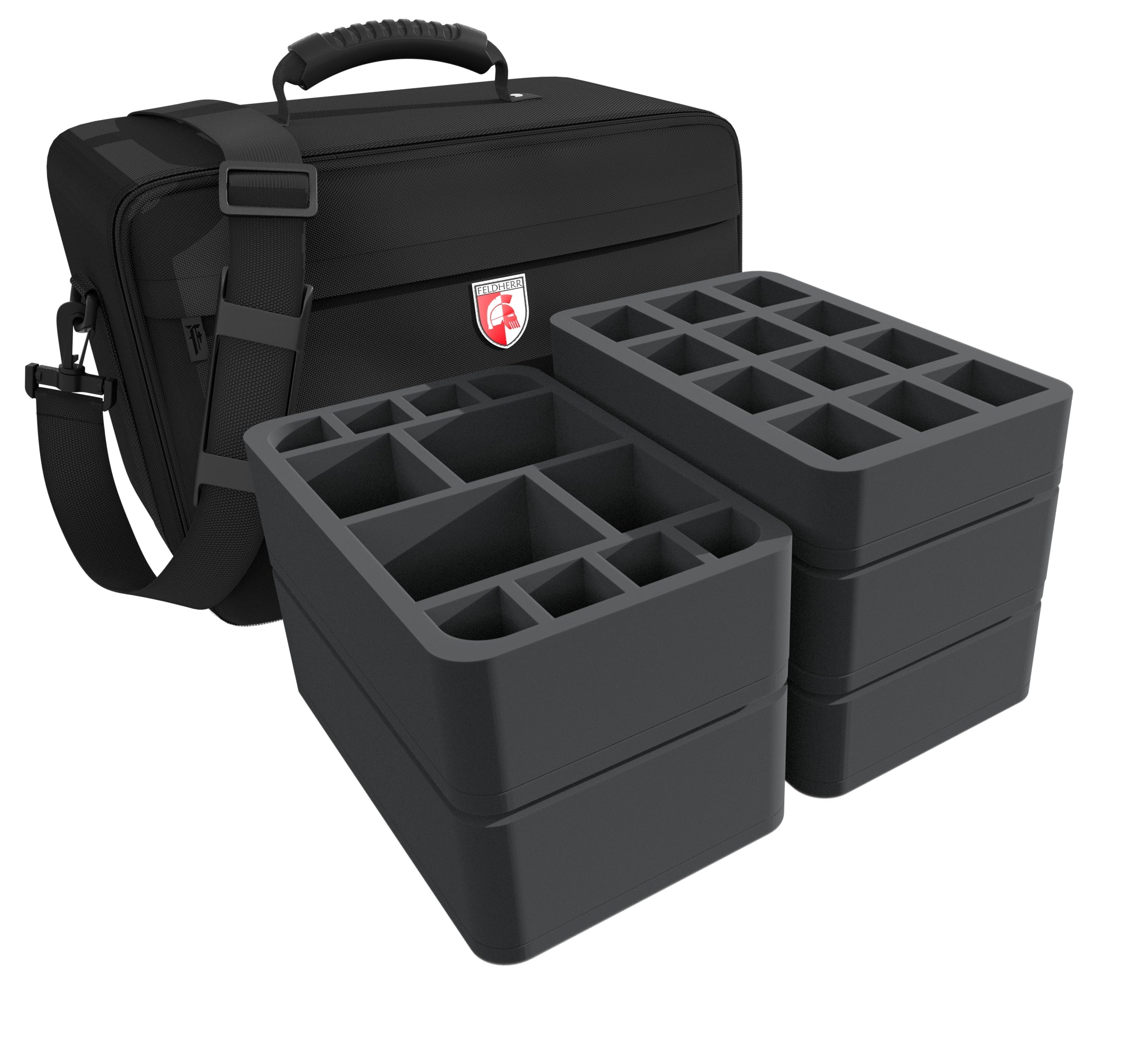 This MAXI PLUS bag, filled with matching Feldherr foam trays, holds up to 76 miniatures of your crews + cards and game accessories.