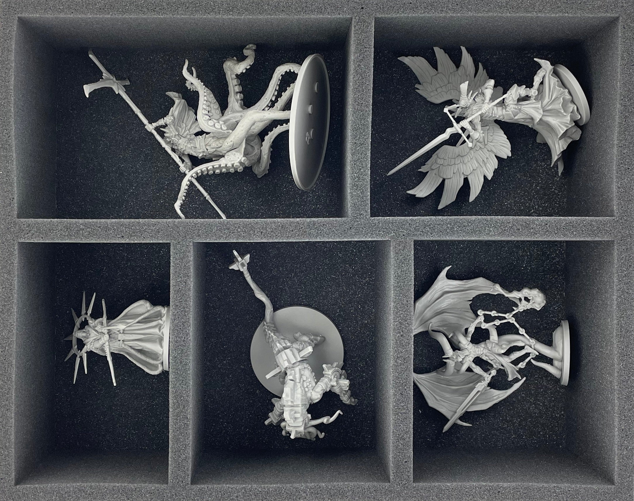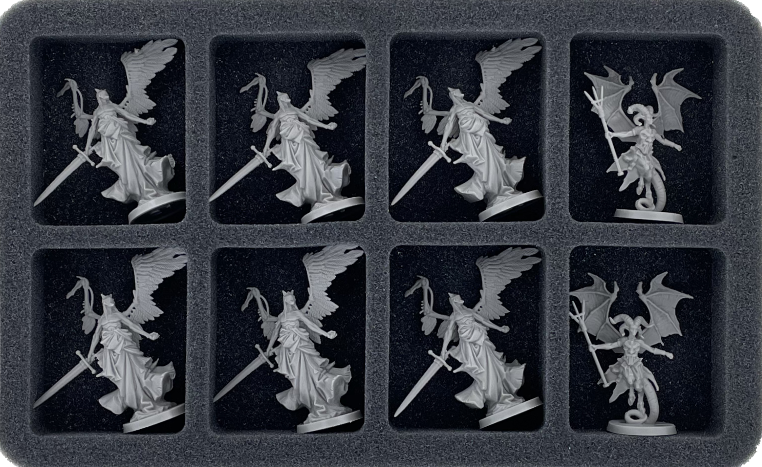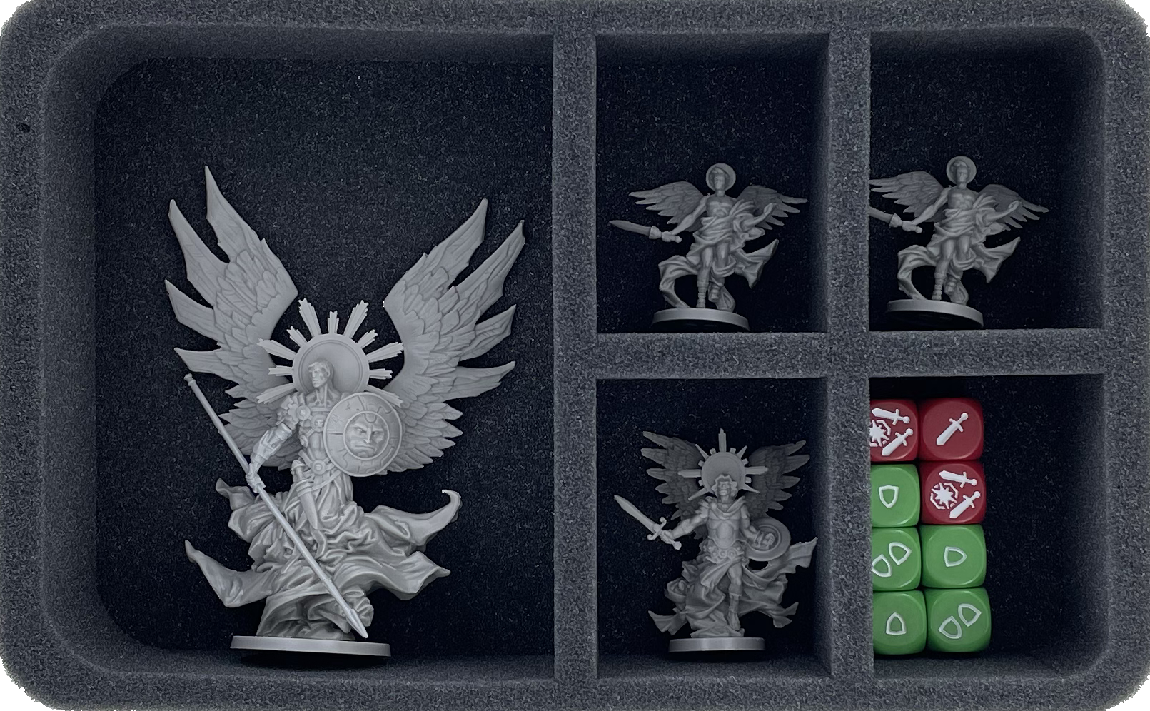 - 1 Full-Size foam tray with 5 compartments for large miniatures like Archangel Michael (FSMFBQ095BO)