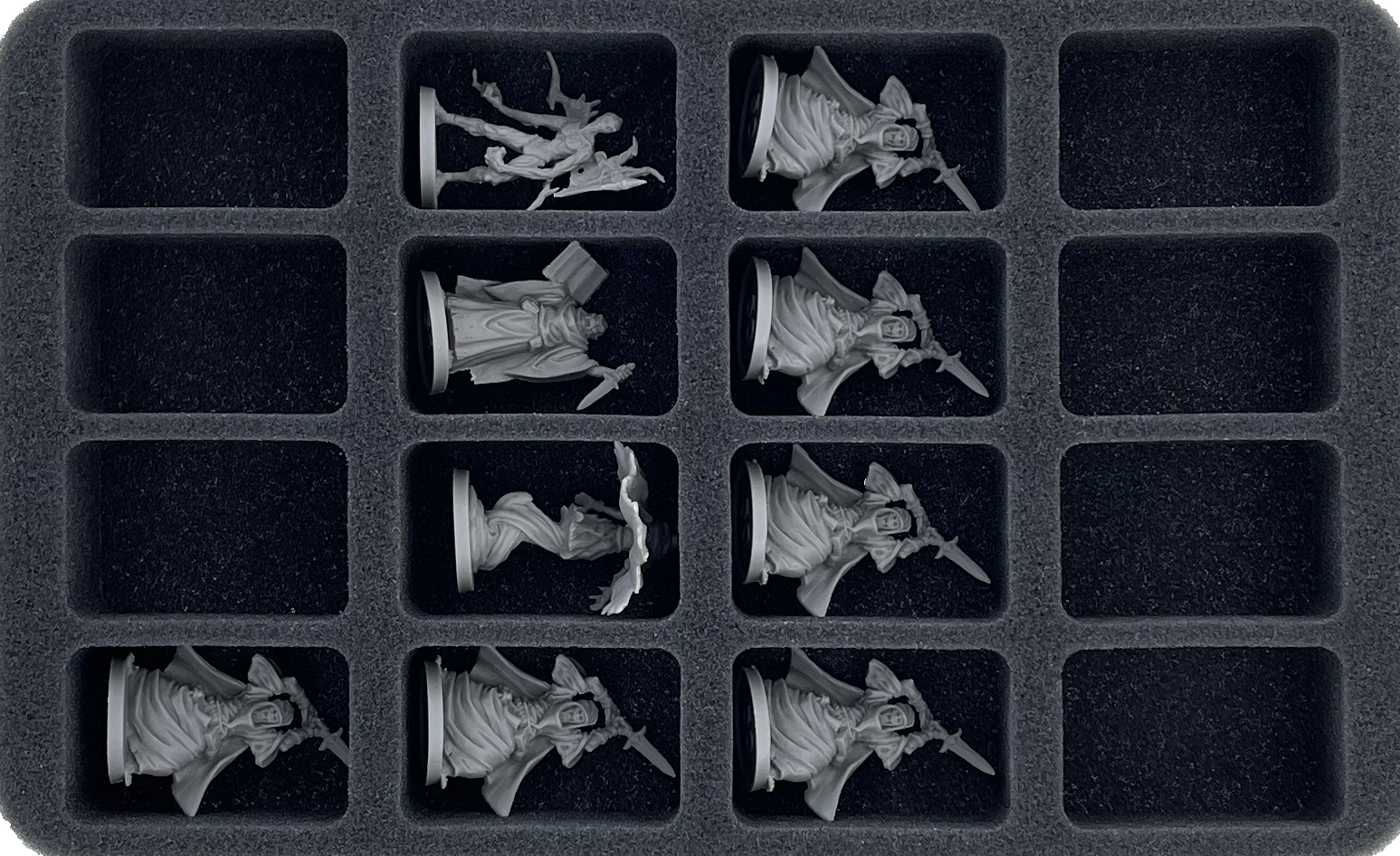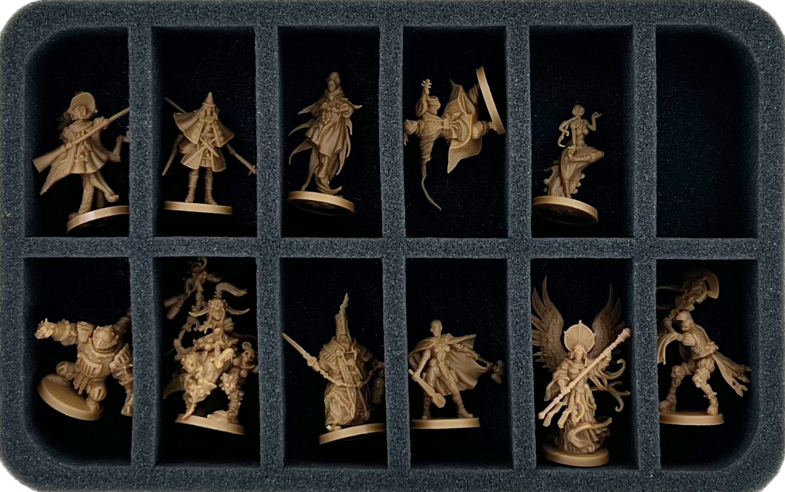 - 1 Half-Size foam tray with 12 compartments for normal-sized miniatures (HS040I012BO)