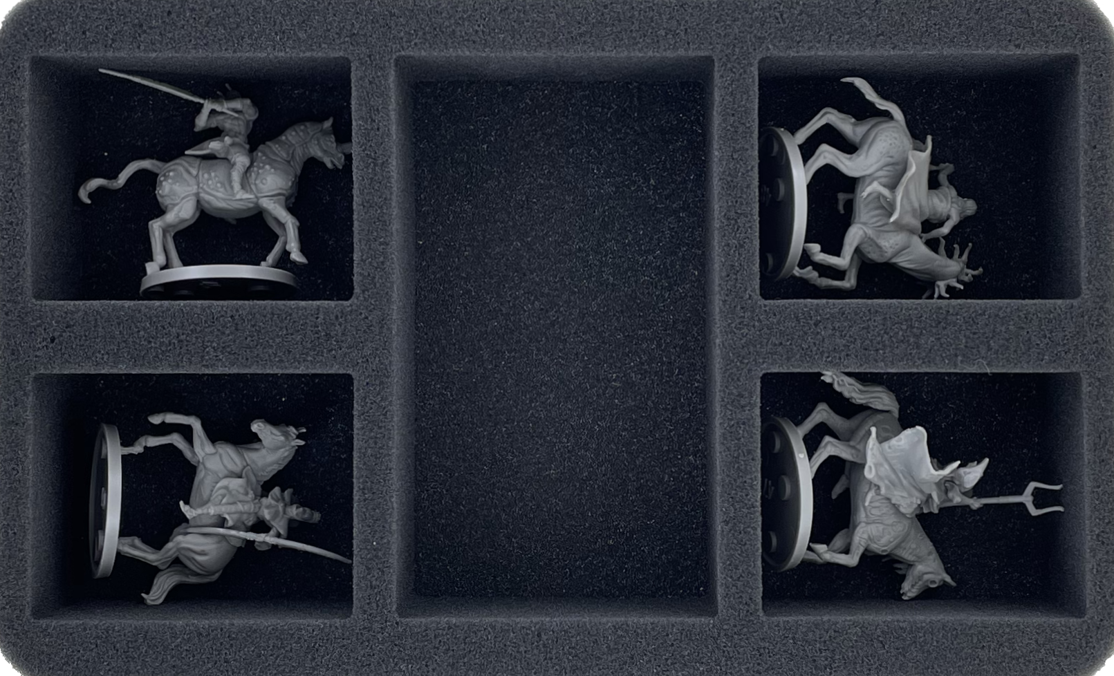 - 2 Half-Size foam trays with 5 compartments each for large and protruding miniatures (2 x HSMFGD060BO)