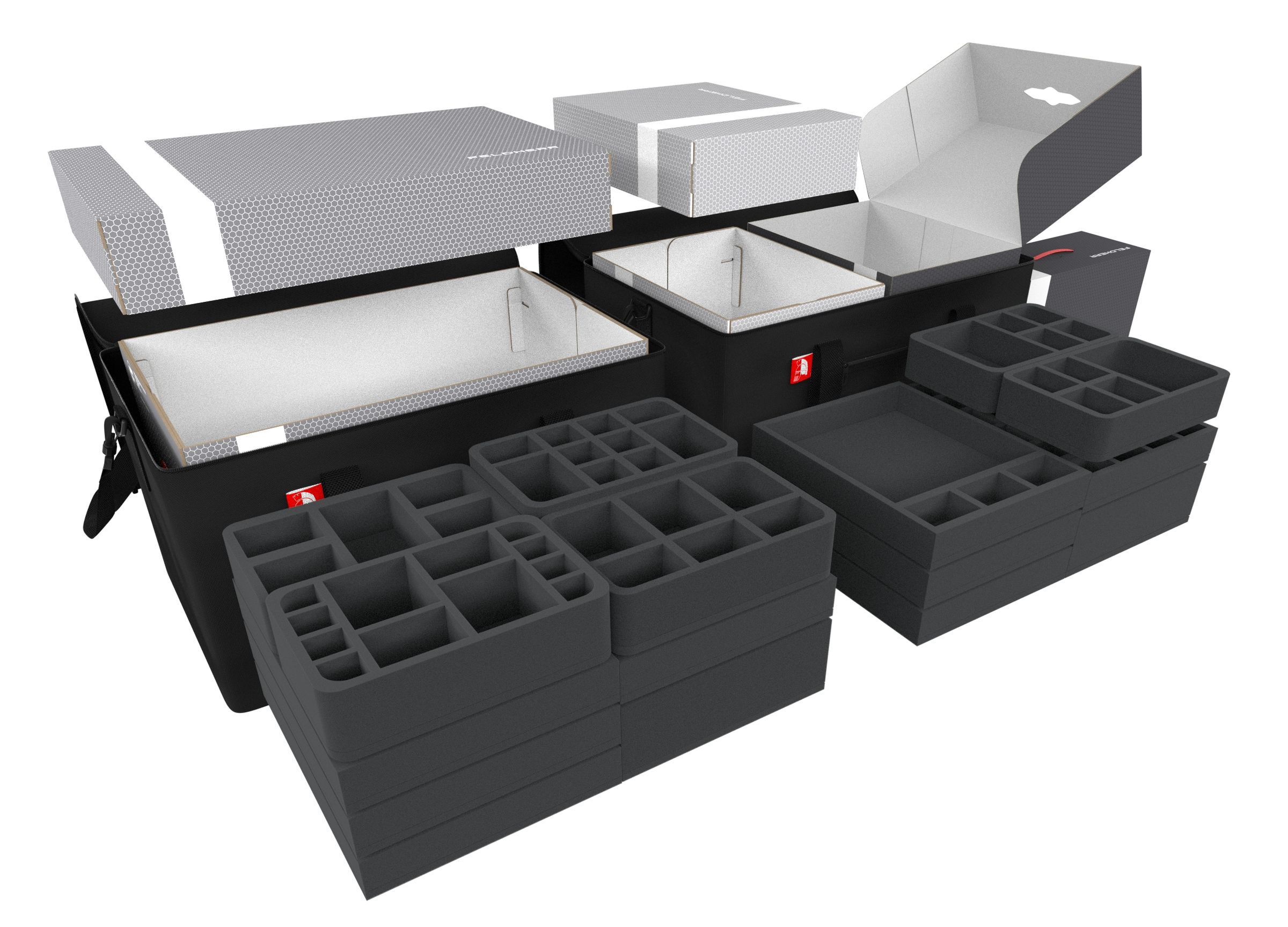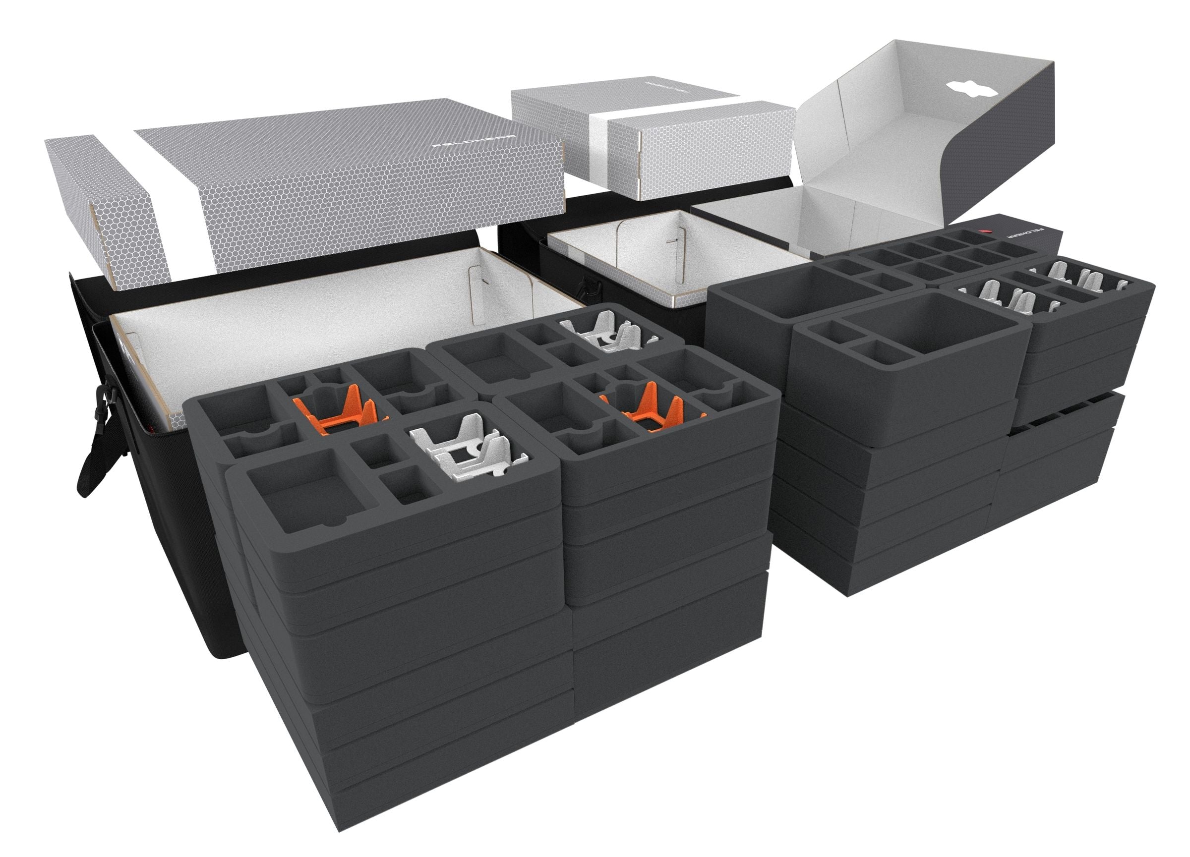 To be prepared for the upcoming game nights, you have secured the Gameplay All-In Pledge from the Kickstarter campaign for “Massive Darkness 2: Hellscape”. More than 200 miniatures and piles of game material are now yours. We provide you with everything you need to store your collection neatly, safely, and as compactly as possible. This Feldherr Transporter Set will ensure that your adventure unleashes on the tabletop and does not come to an untimely end on the way to it.