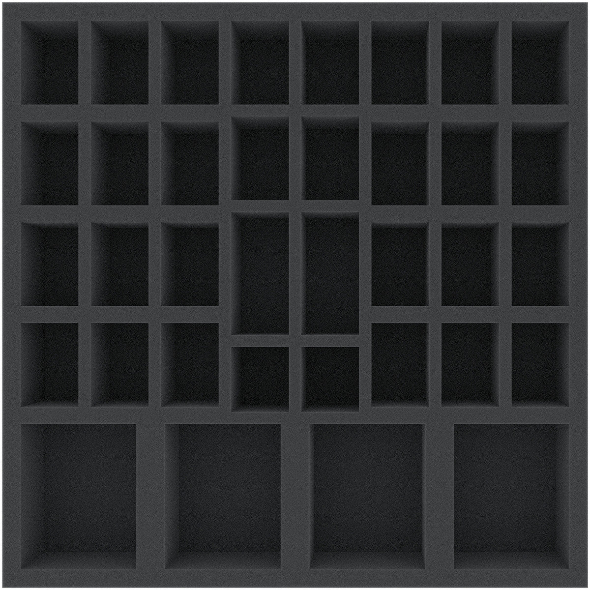 - 1 foam tray with 34 compartments for miniatures + base rings