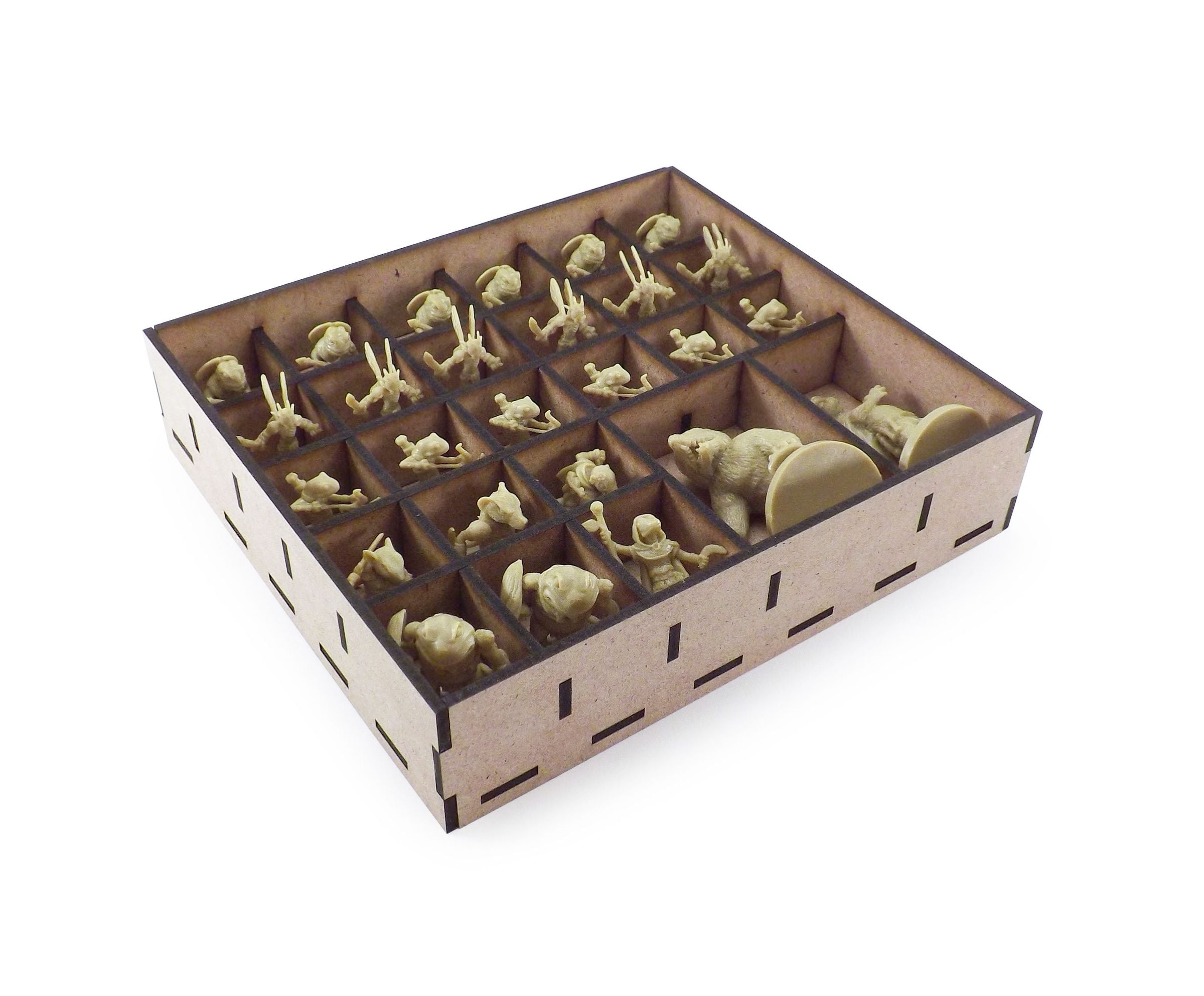 The hero mice leave their home castle and discover a whole new world: new allies, new enemies, climbable trees, lots of cards and many, many tokens. Our insert groups and sorts all these components and creates order in the forest hideout.
