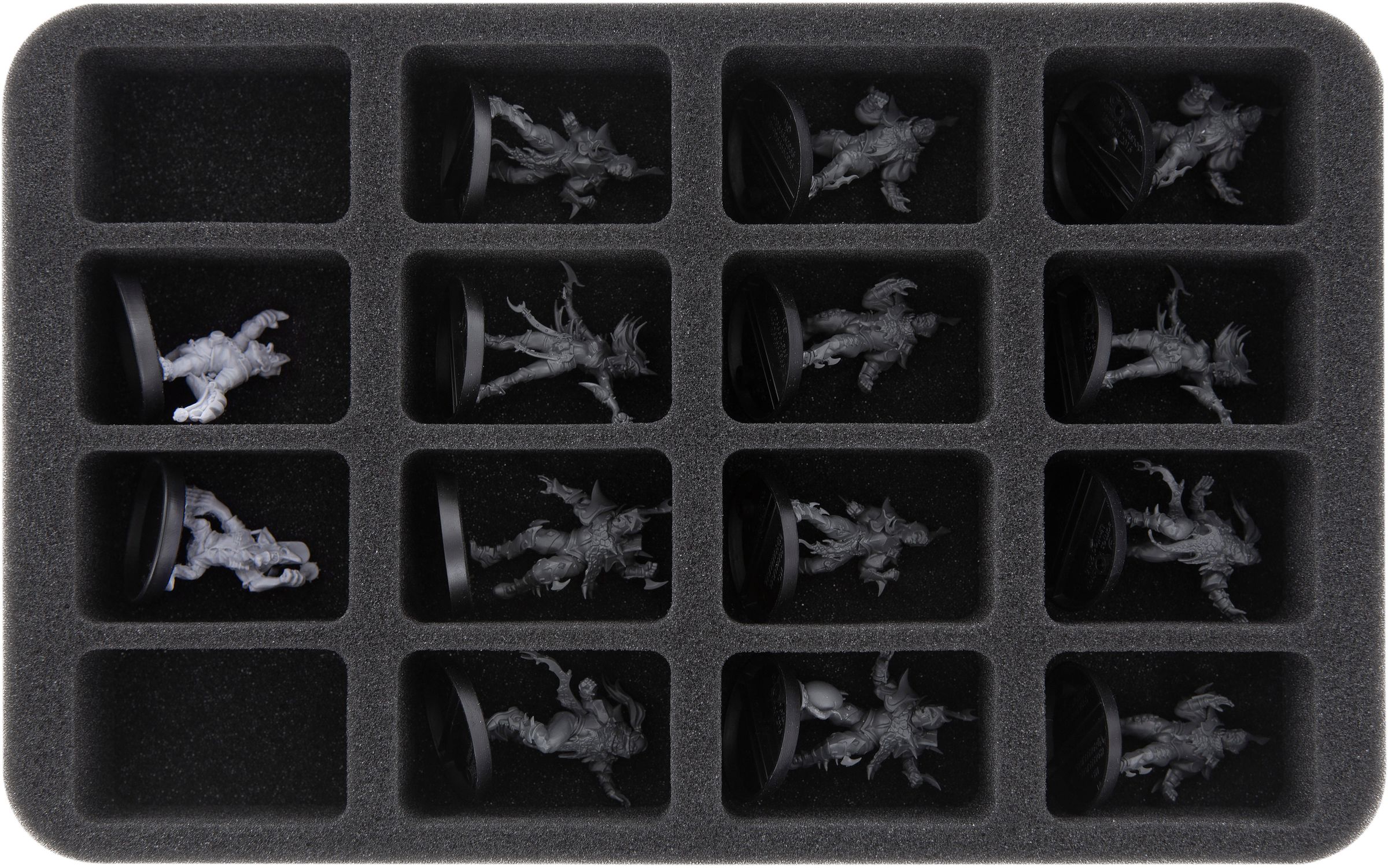 • 1 Half-Size foam tray with 16 compartments for standard infantry miniatures on up to 32 mm base (HS040BF05BO)