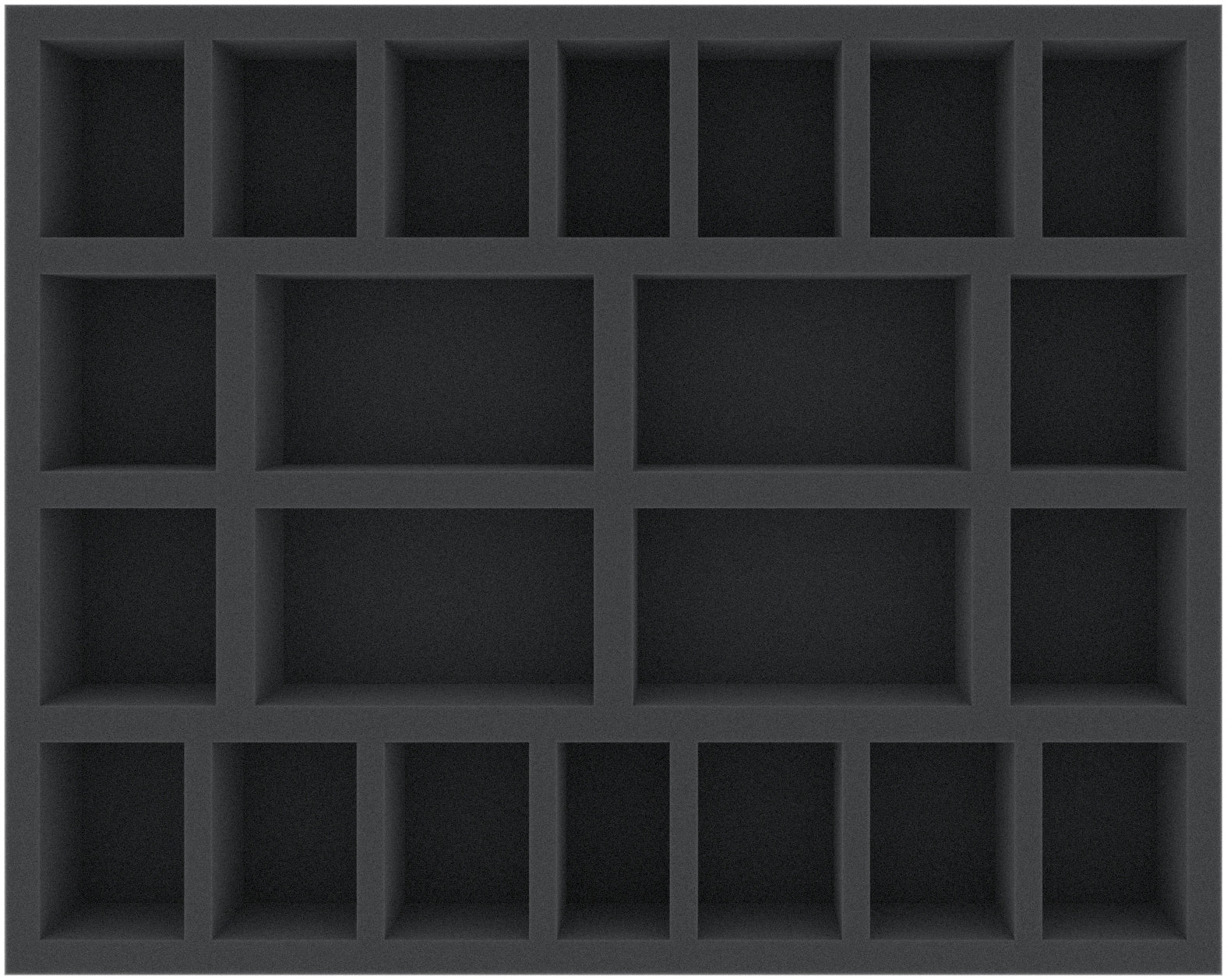 This foam tray has 22 compartments of different sizes. Ideal for bulky miniatures or game material.
