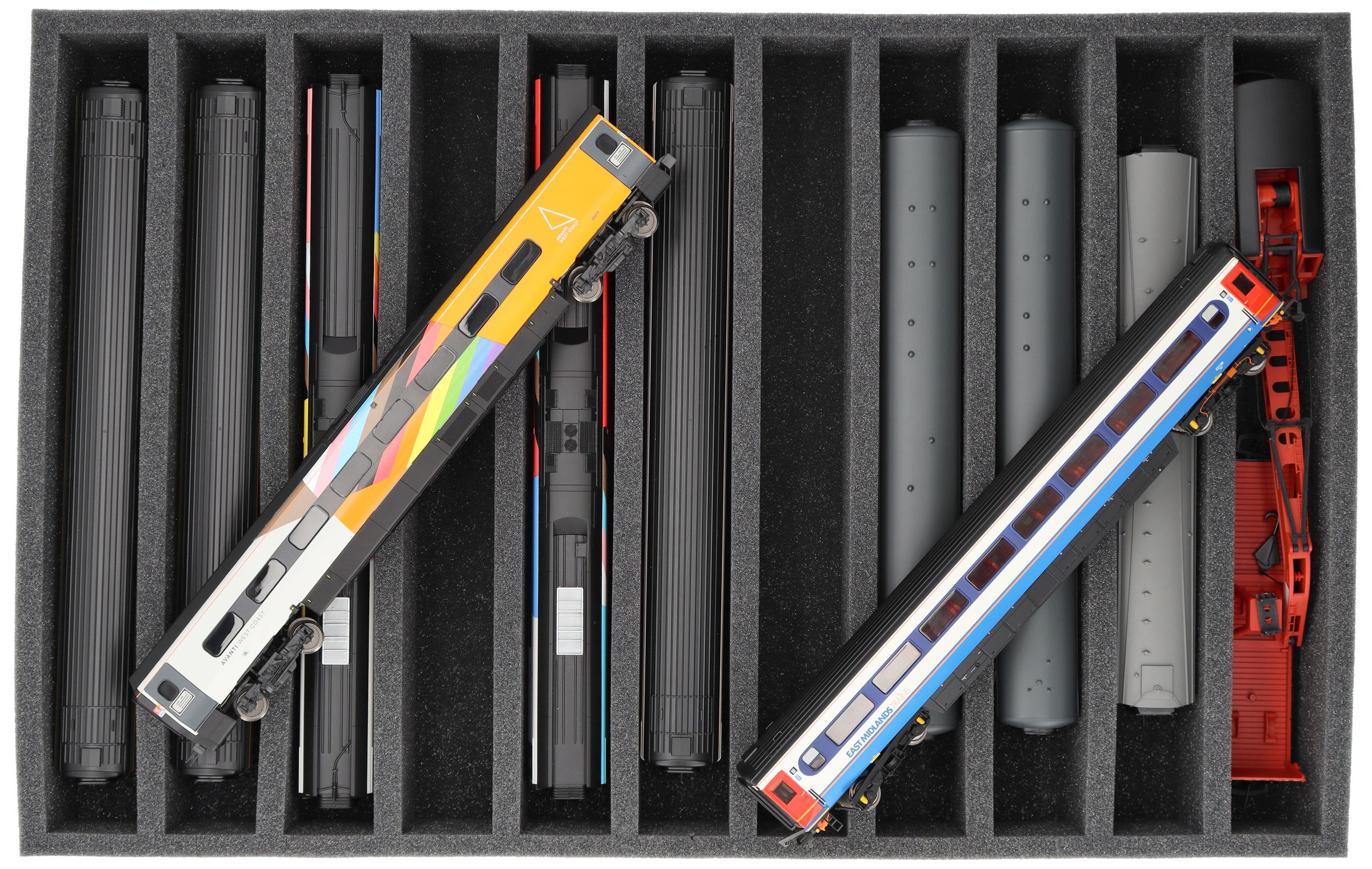 DS065A005 Foam inlay 00 Gauge - vertical - 11 slots for model railway locomotives, wagons and vehicles