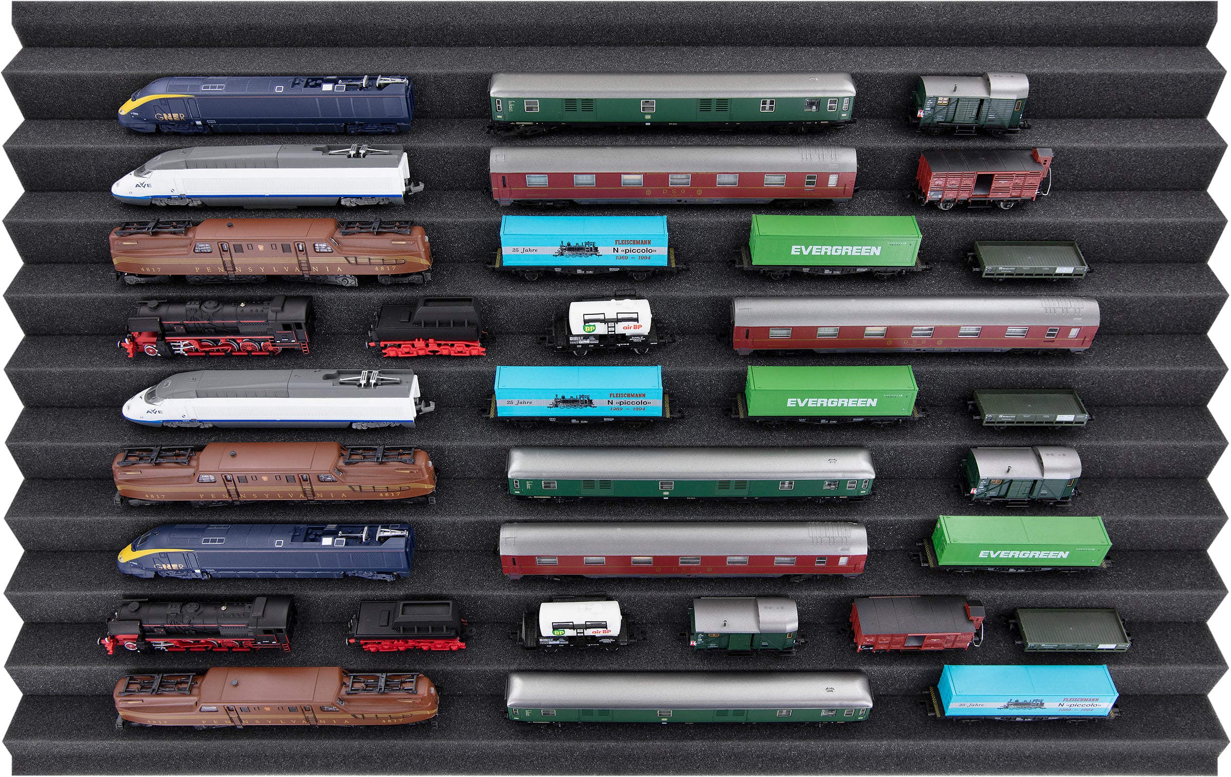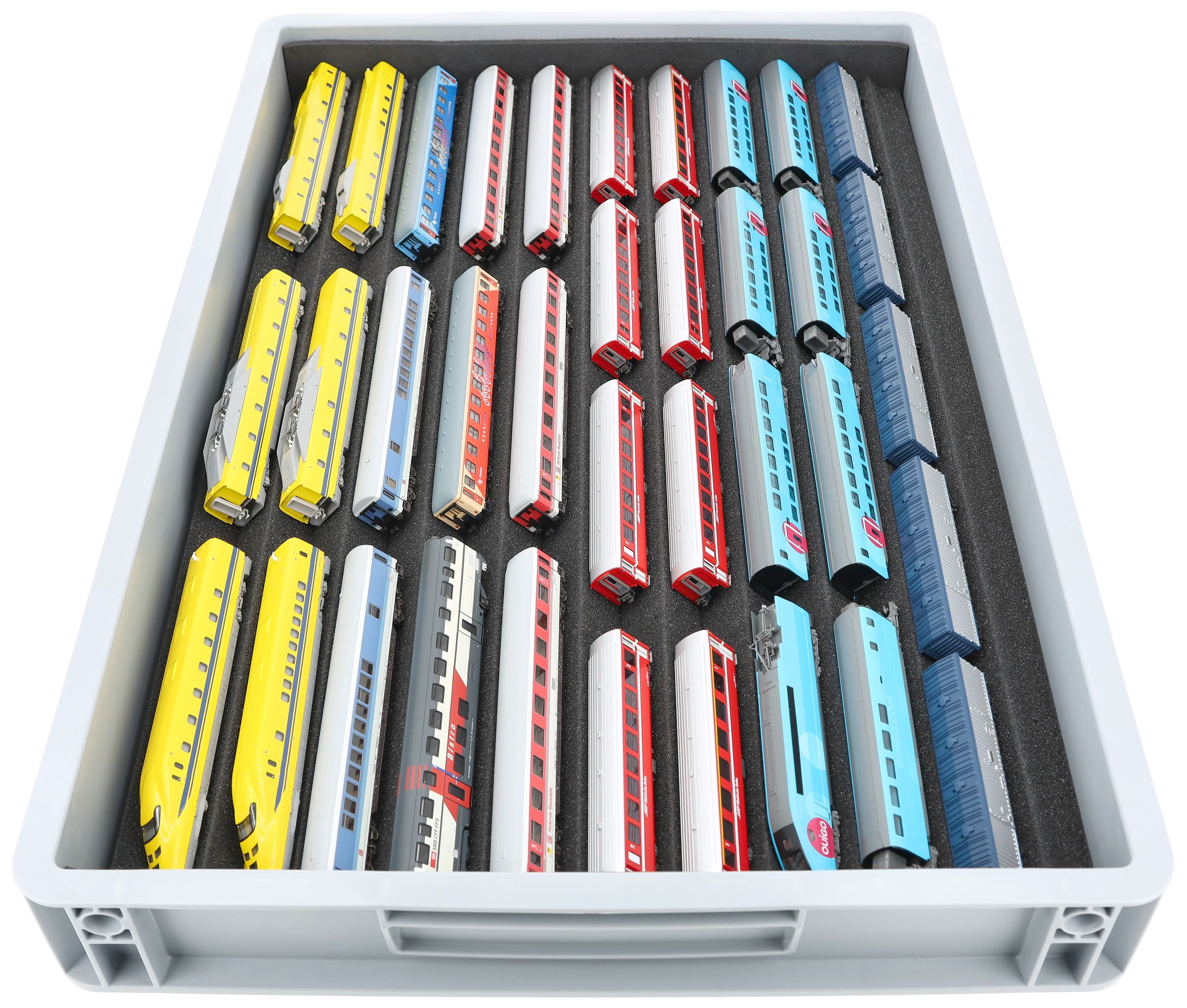 Ten compartments, tailor-made for model railways in gauge N, offer your locomotives and wagons reliable protection for storage and transport.