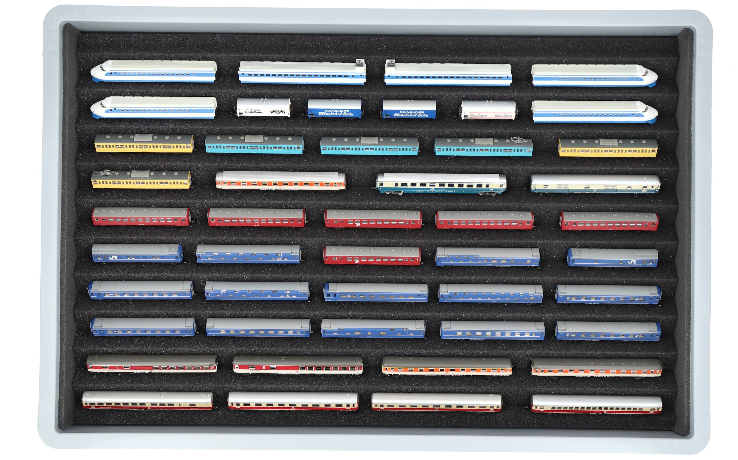 Ten compartments, tailor-made for model railways in gauge Z, offer your locomotives and wagons reliable protection for storage and transport.