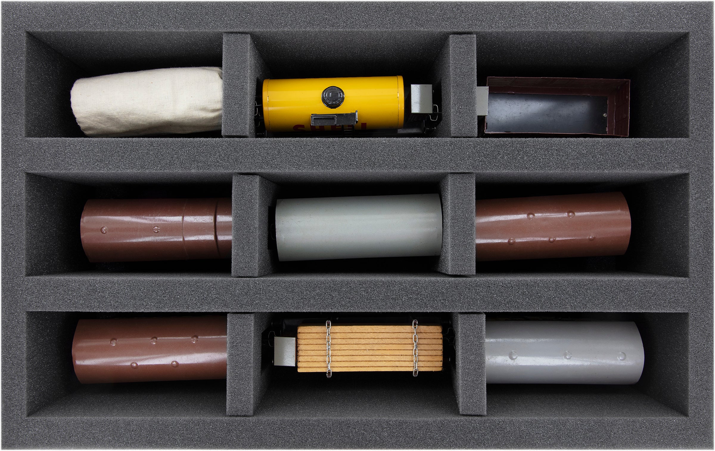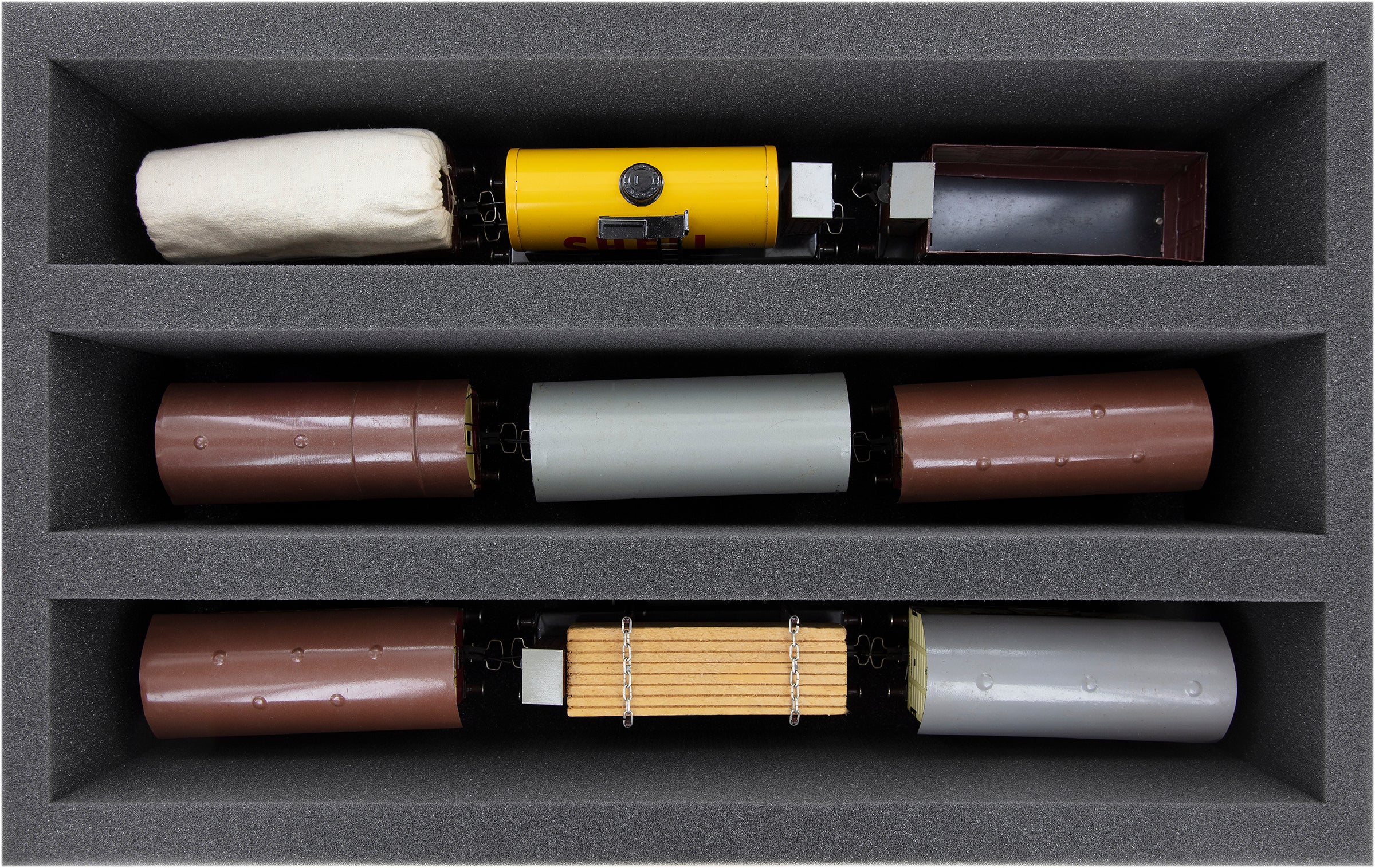 • 1 Double-Size foam insert with 3 slots for models in 0 Gauge, in standing position (DS115A001)