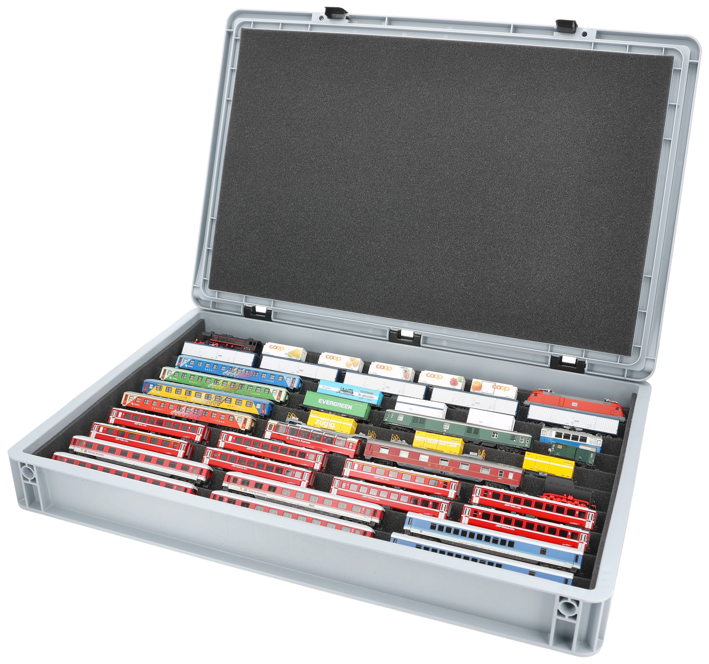 Ten compartments, tailor-made for model railways in gauge N, offer your locomotives and wagons reliable protection for storage and transport.