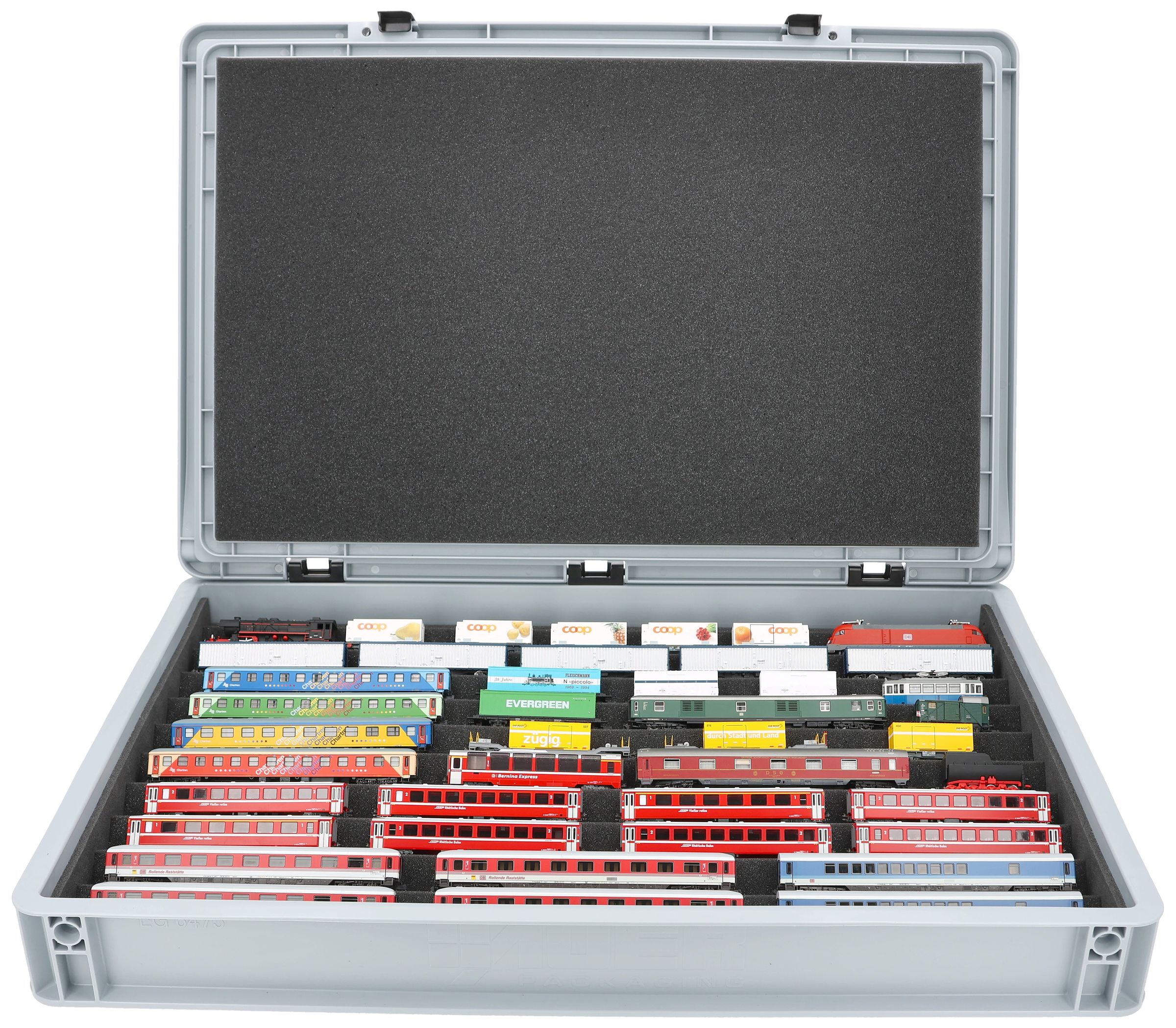 Stored properly, presented clearly and transported safely - The all-round foam inlay for model railways in N gauge in the solid Eurobox.