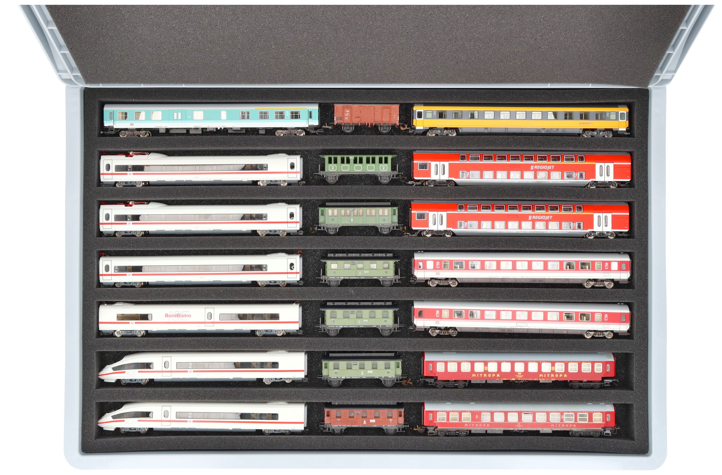 • 7 compartments - foam insert for horizontal storage of locomotives, wagons and vehicles