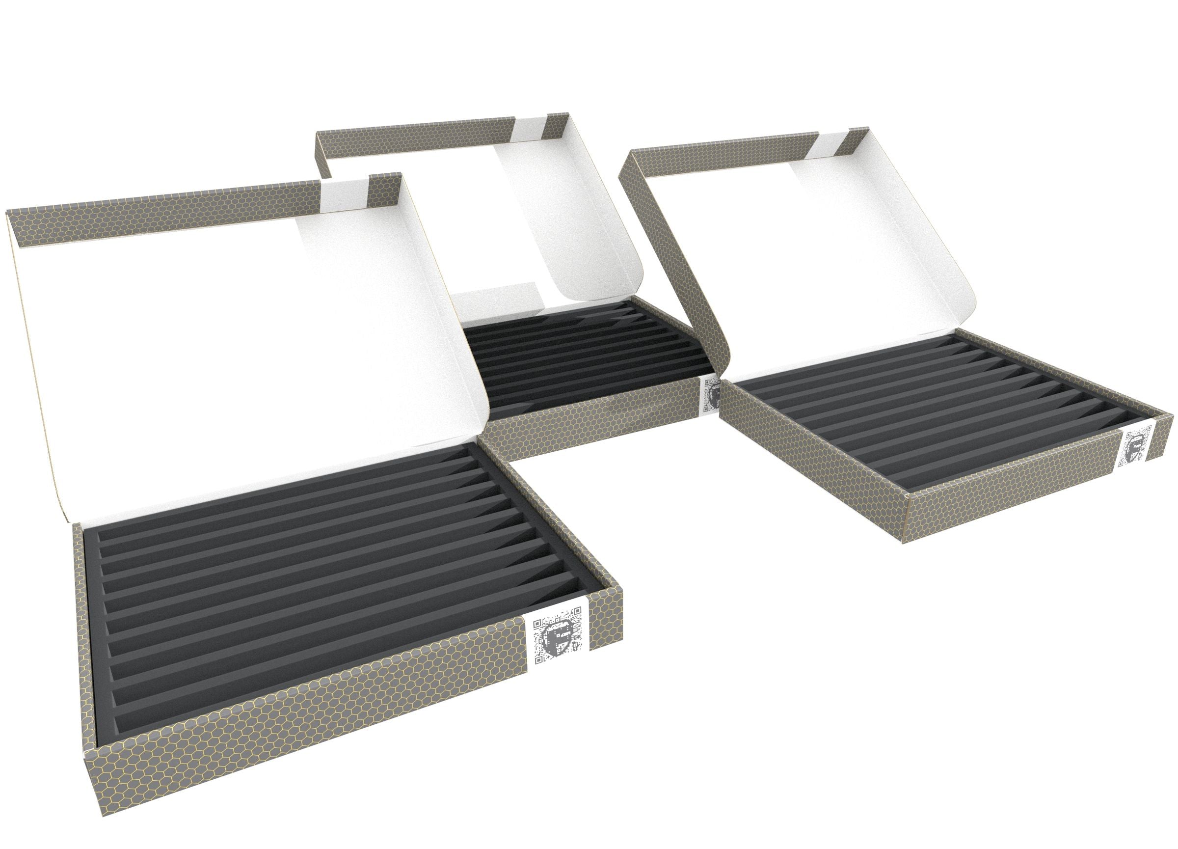 The inlay fits perfectly into the Feldherr Storage Box FSLB040. The box is made of coated, double-walled cardboard. This makes it not only pleasantly light, but also particularly tear-resistant and stable. The models can be stored safely and protected against dust and other external influences. Thanks to the flat, compact form, they are easy to transport.