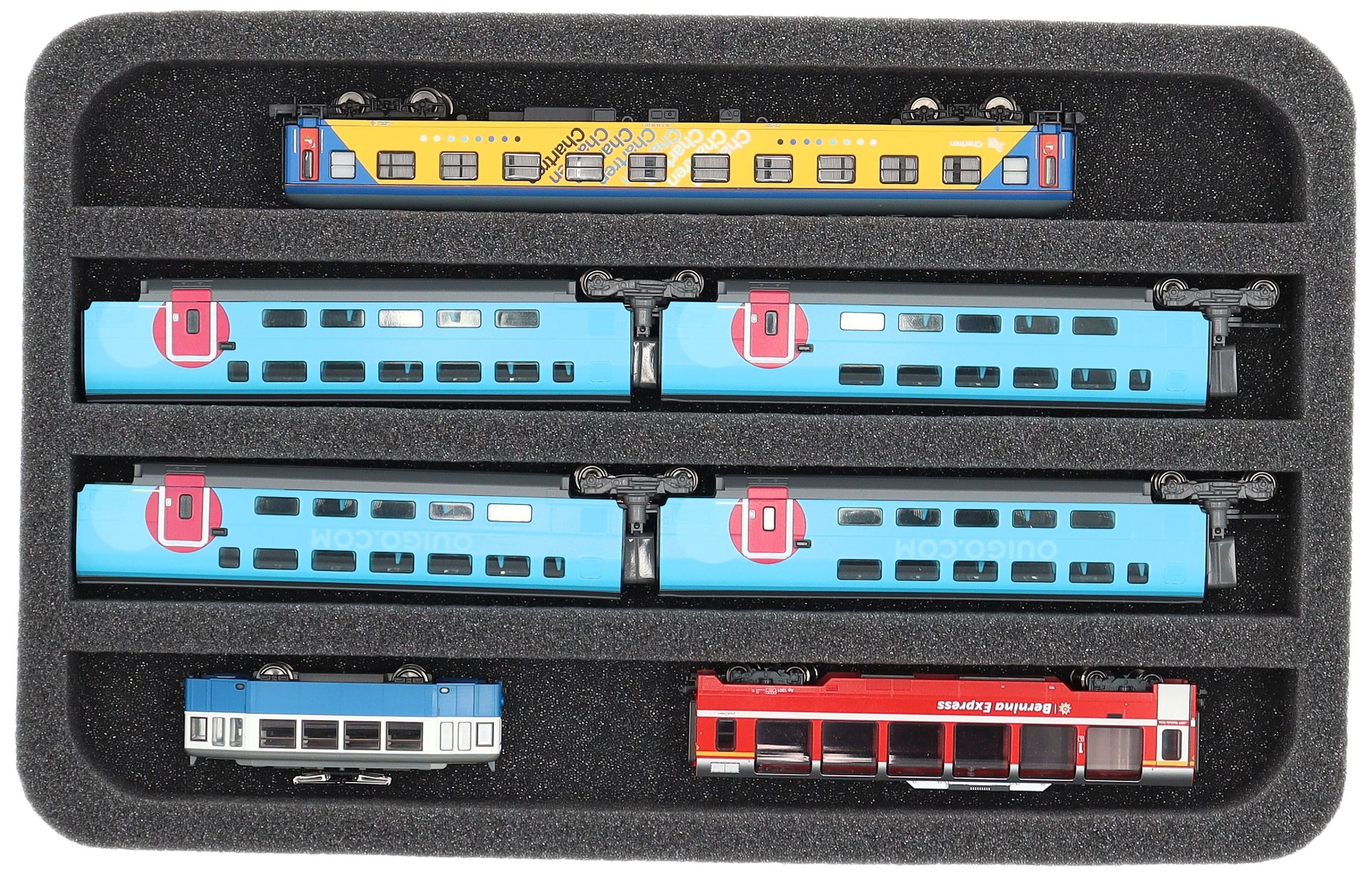 Stored properly and transported safely. With this Feldherr Half-Size foam inlay for model railways in N Gauge your models are safe.