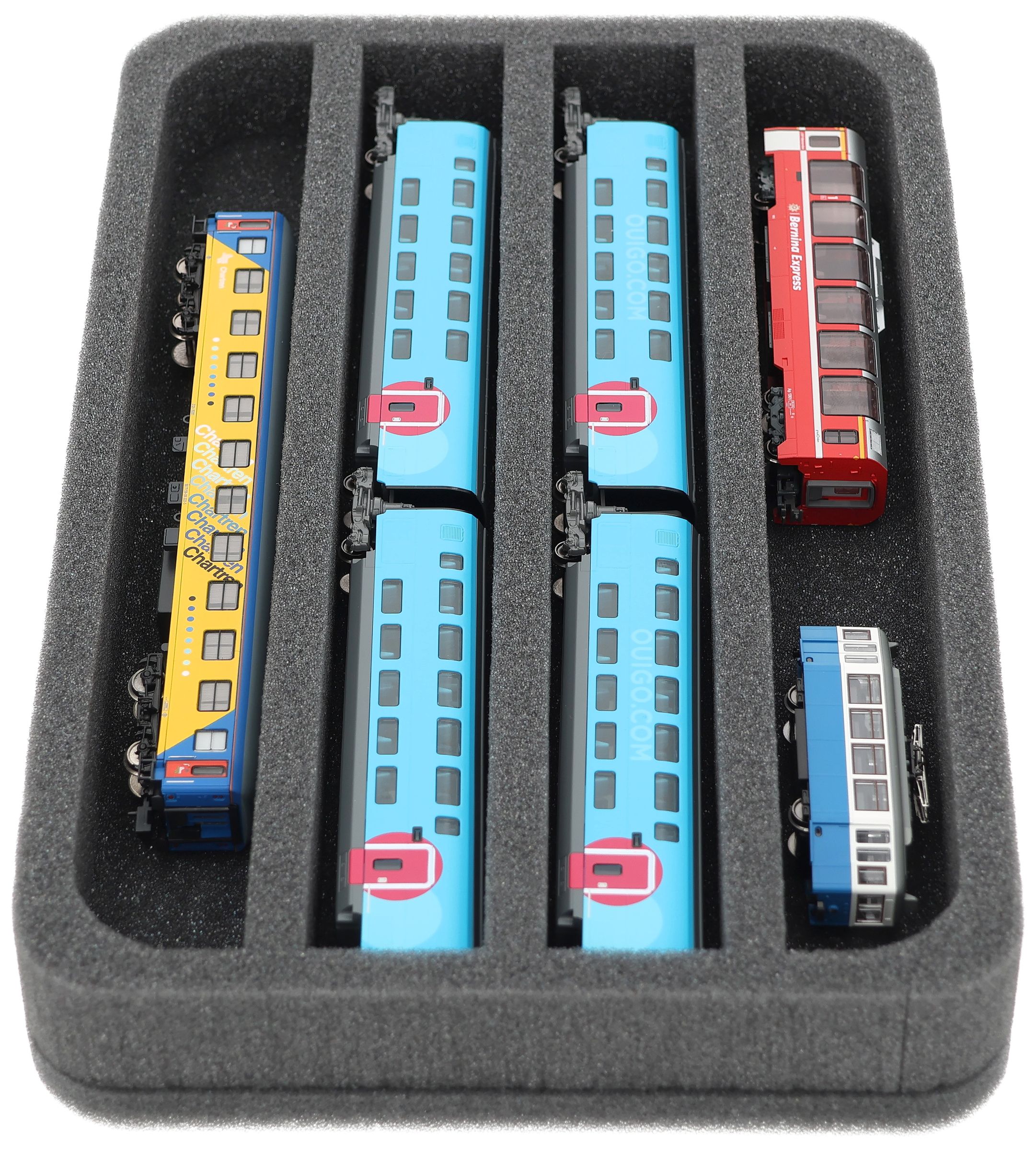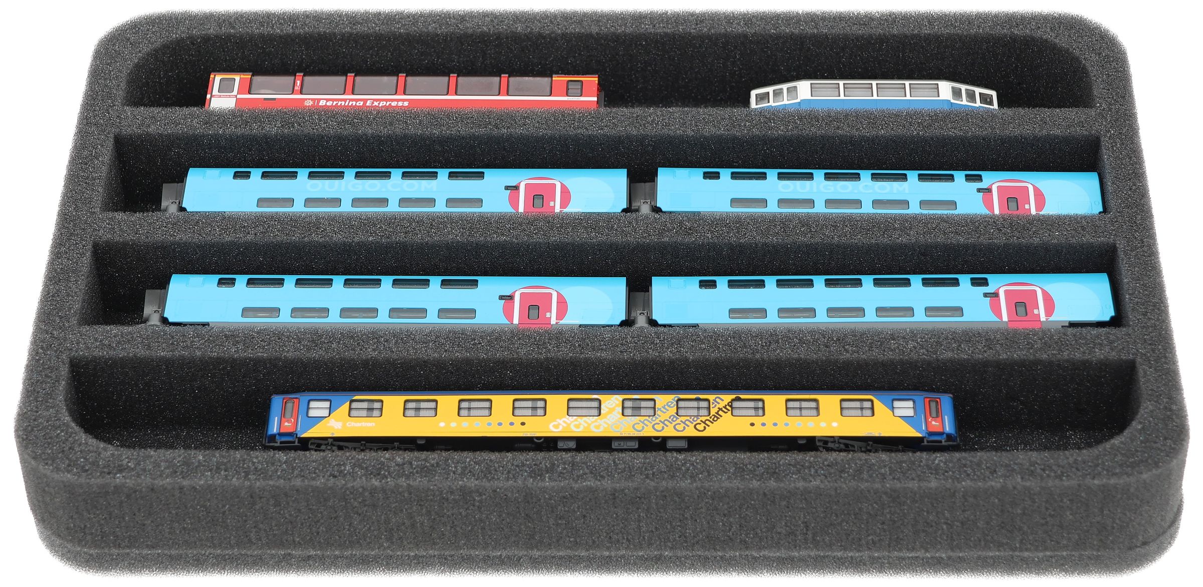 HS035A002 Foam inlay N Gauge - horizontal - 4 slots for model railway locomotives, wagons and vehicles