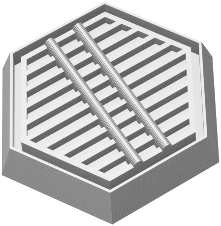 Individually designed hexagonal plastic base in industrial design. Ideal for game systems that require hexagonal bases such as Battletech