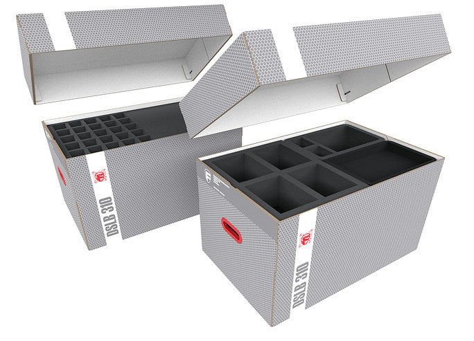 The set includes the two spacious Storage Boxes DSLB310, bursting with high-quality Feldherr foam trays, and Pick and Pluck foam for the protection of your models, as well as Storage Boxes TCHS105 with Organizer Trays for your cards and game material. This way, your figures will be safely stored, and your game materials will be neatly organized.