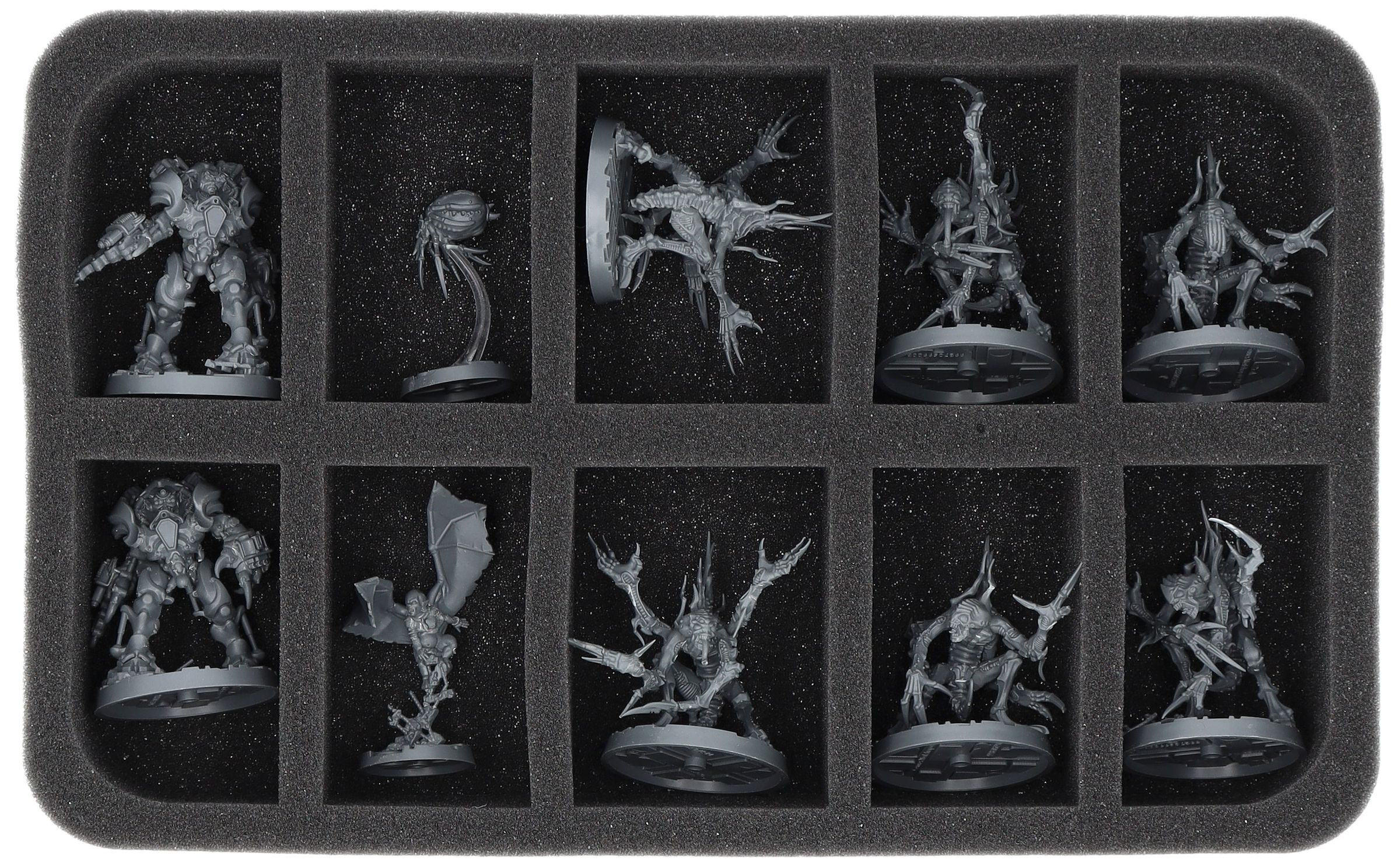 The Feldherr MEDIUM PLUS Bag is specifically designed to accommodate all miniatures from the Necromunda: Hive Secundus Box. The custom foam inserts keep your figures perfectly organized and protected from damage during transport. Additionally, the bag provides enough space to hold up to 23 extra Necromunda miniatures, ensuring you can carry even more of your collection safely.