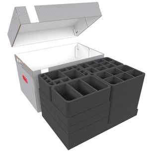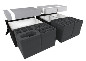 With matching boxes, foam inserts and organizer trays, Necrons miniatures, datasheets and accessories remain well protected, space-savingly stowed away and always at hand.