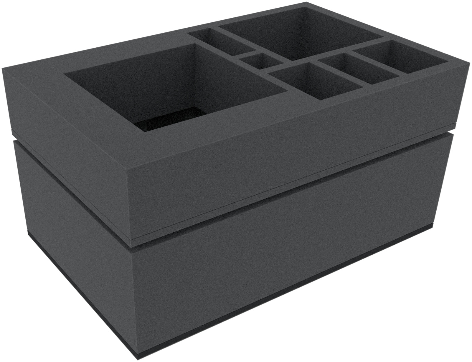 - 1 Double-Size foam tray with five compartments and PE rigid foam base for Tesseract Vault lower part + base + other miniatures like Triarch Stalker, Tomb Blades